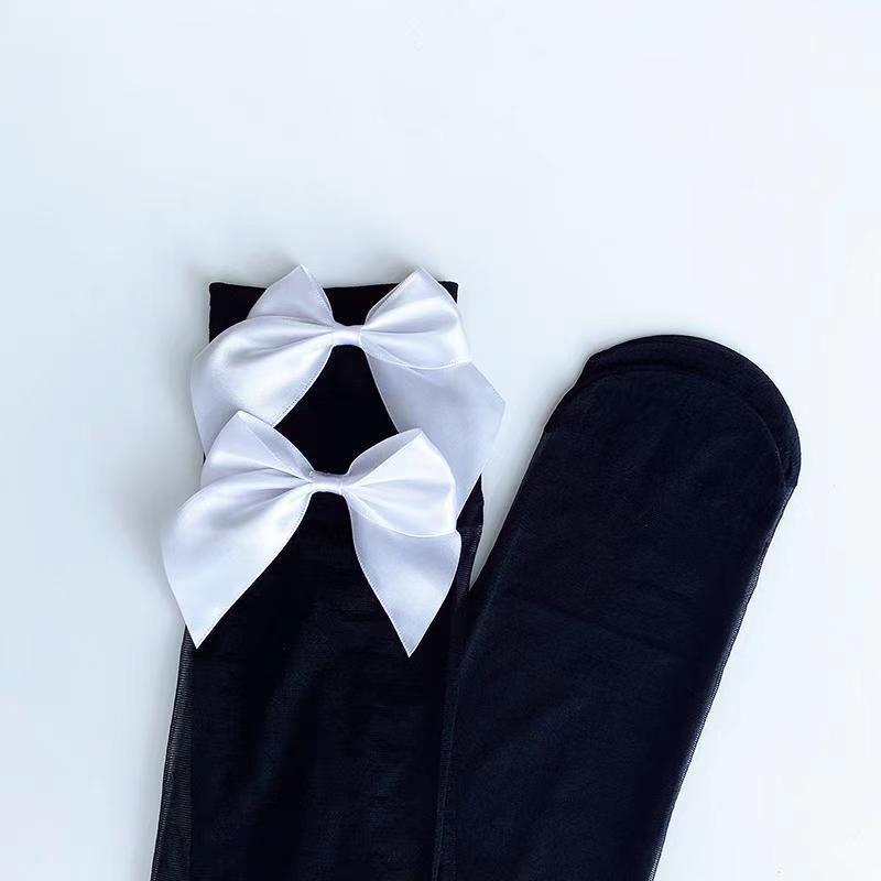 性感蝴蝶结蕾丝花边白丝袜过膝袜夏季薄款长筒黑丝超薄大腿袜爆款