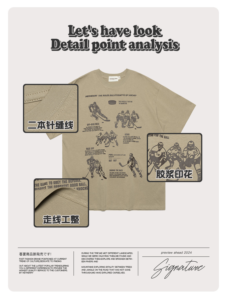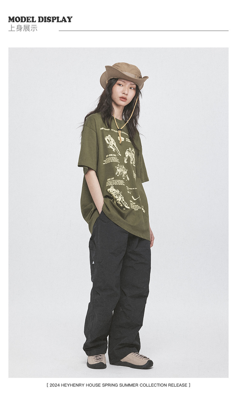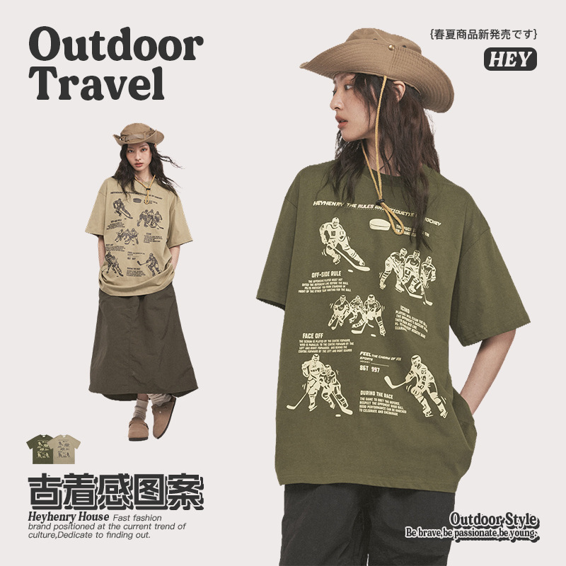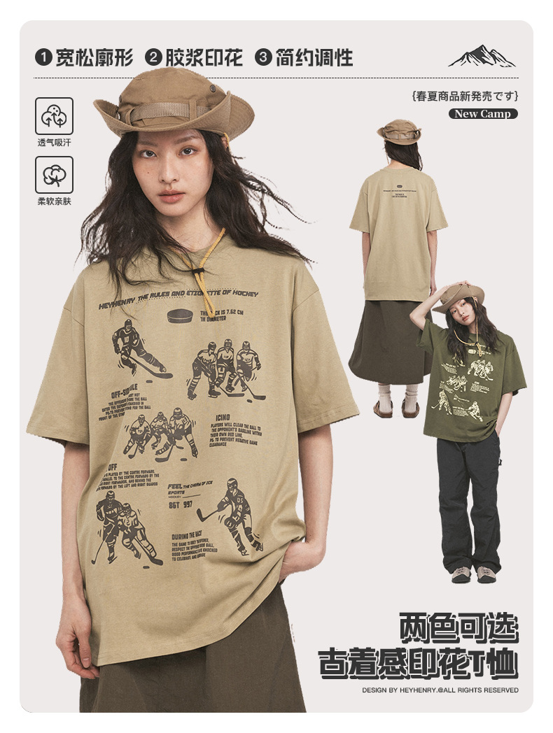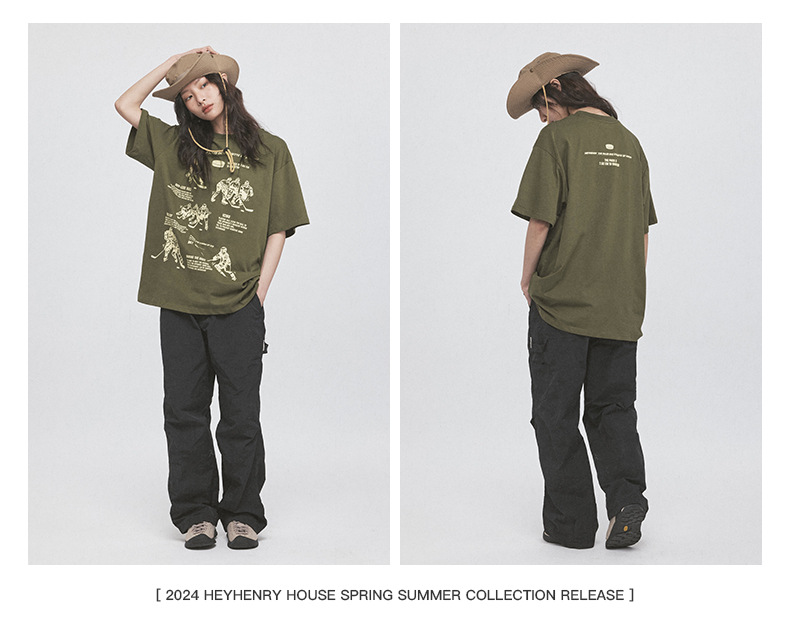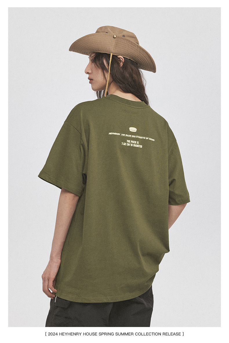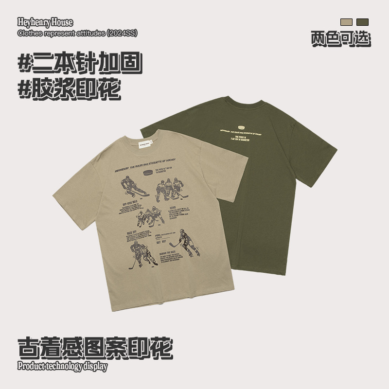 HeyHenry 男装美式圆领短袖高街潮牌oversize夏季宽松情侣t恤上衣