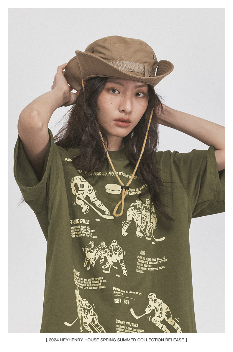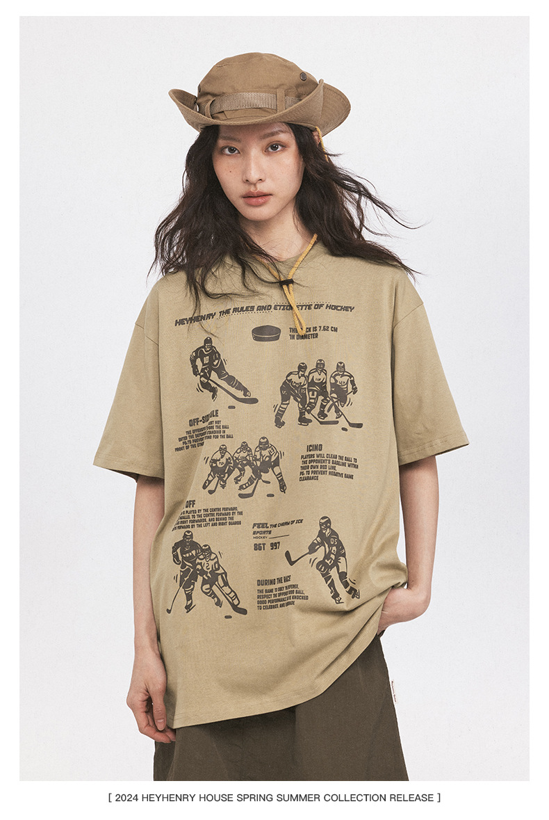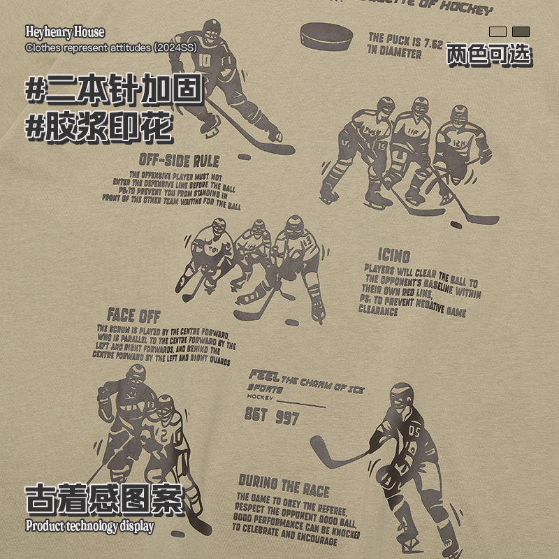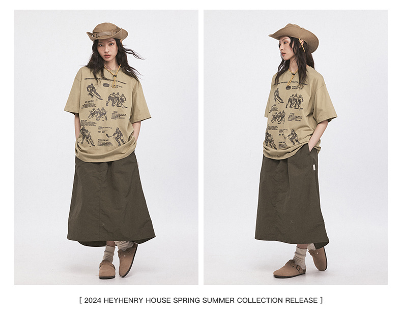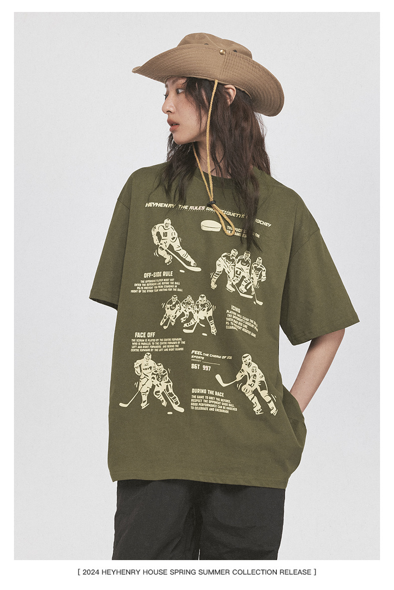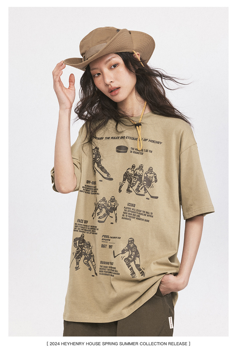 HeyHenry 男装美式圆领短袖高街潮牌oversize夏季宽松情侣t恤上衣