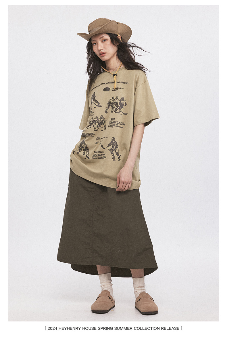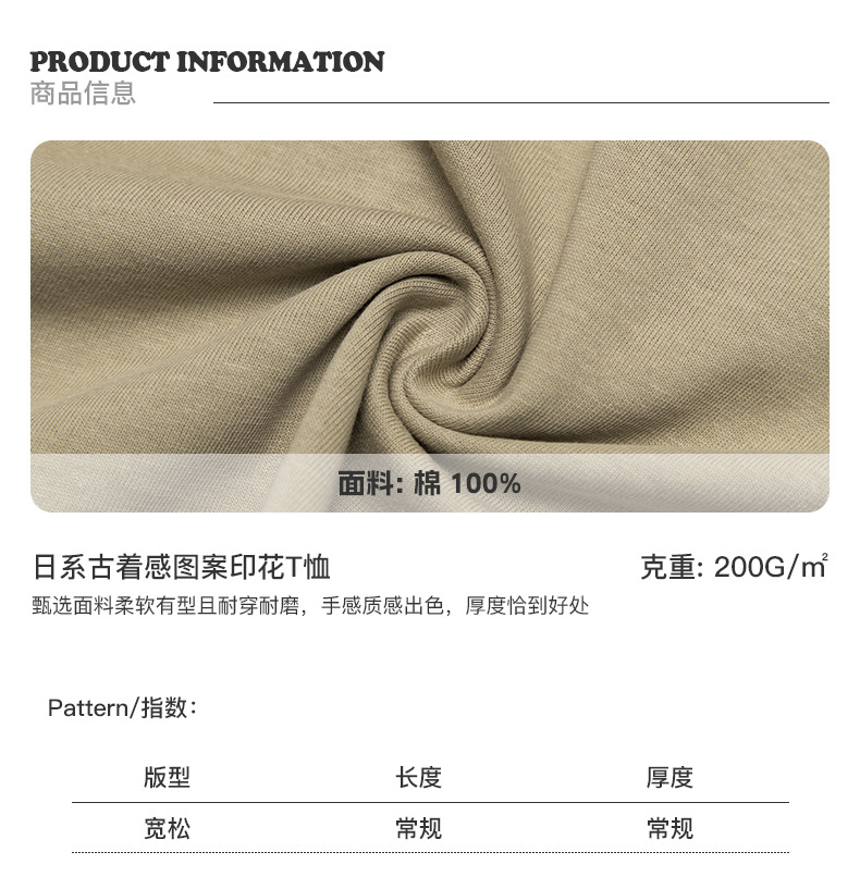 美式vintage纯棉杏色短袖t恤女夏季大码200斤胖mm印花宽松上衣