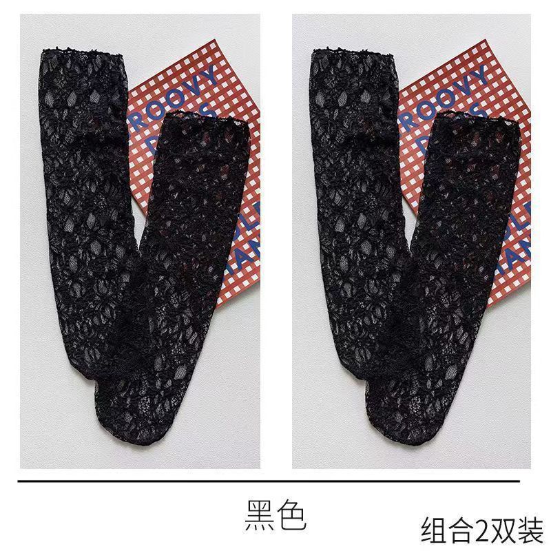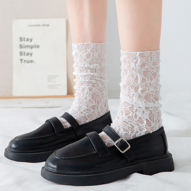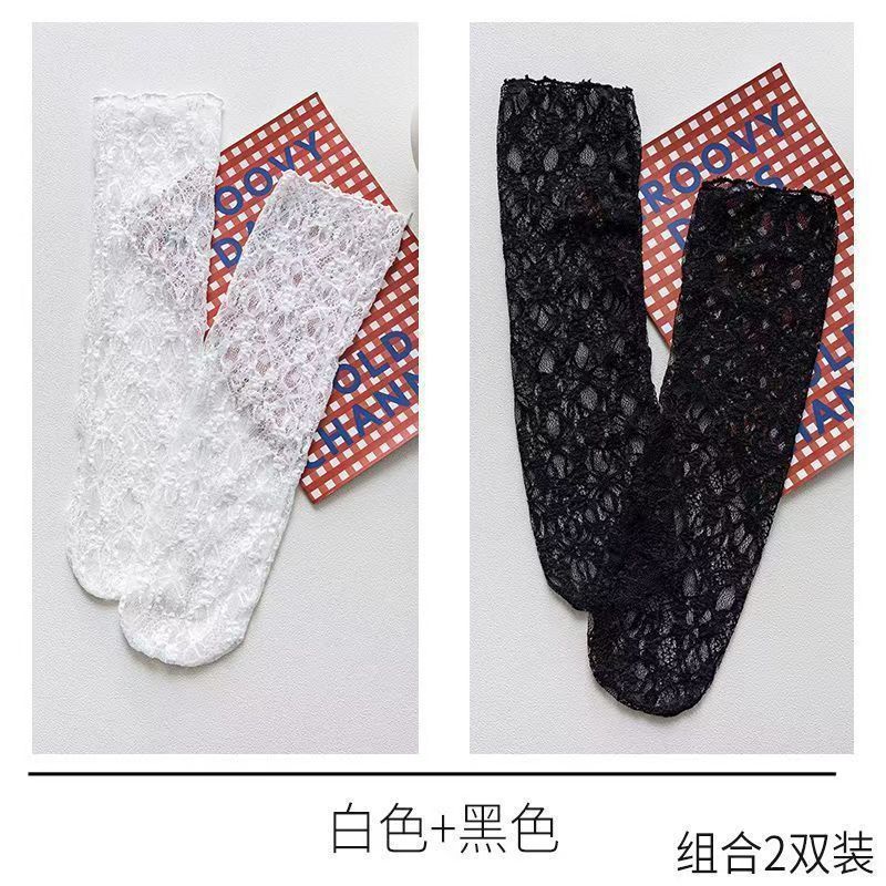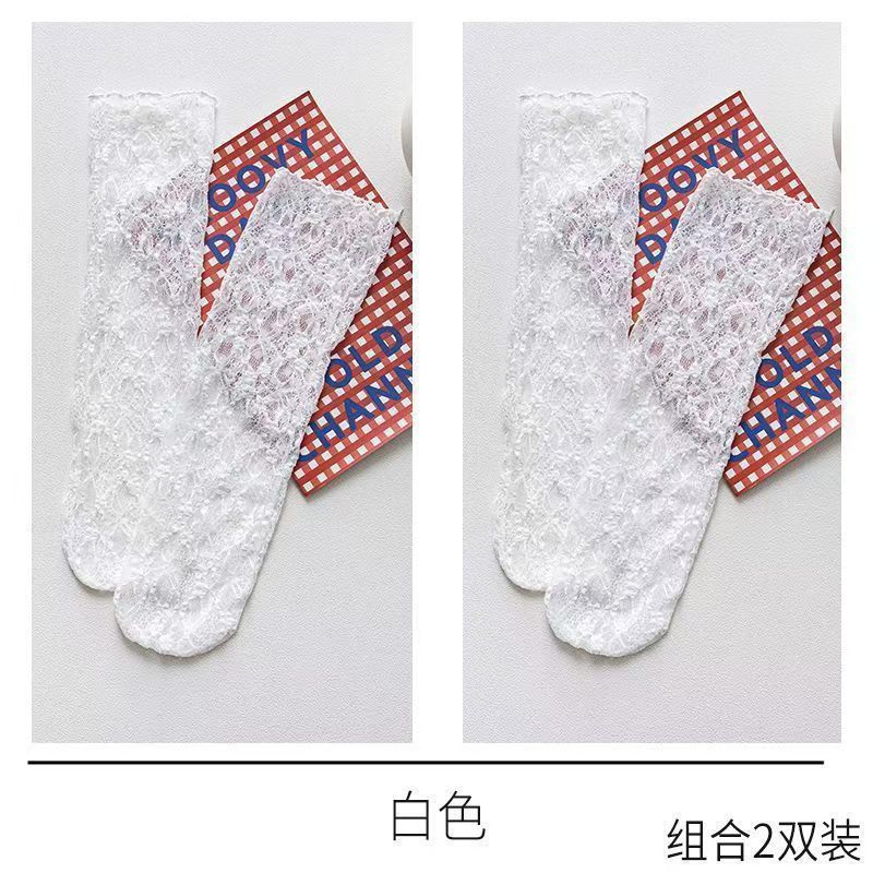 白色蕾丝袜子女夏季薄款中筒袜网纱jk可爱洛丽塔玛丽珍少女堆堆袜