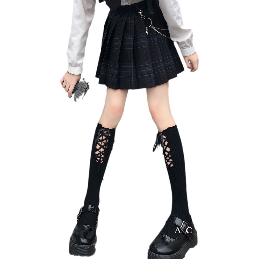 日系洛丽塔黑色中筒绑带袜子jk可爱少女软妹春夏季薄款穿搭ins潮