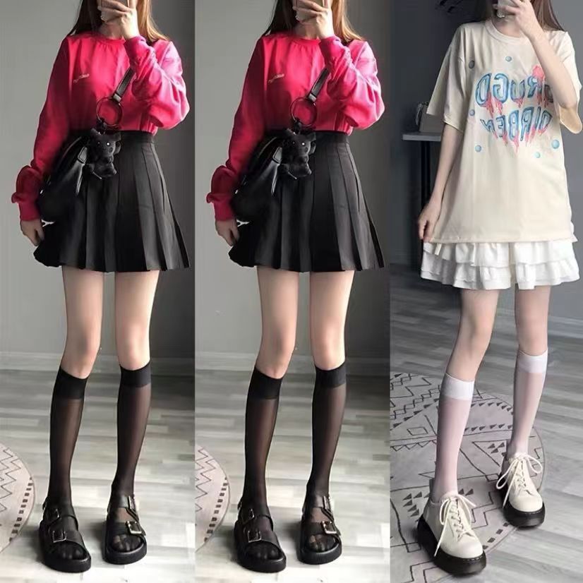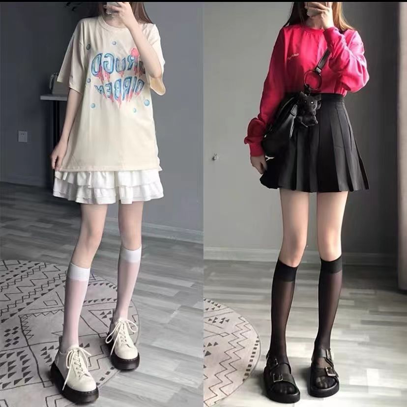 透明瘦腿包芯丝中筒压力袜小腿袜子女夏季薄款jk袜半截性感丝袜