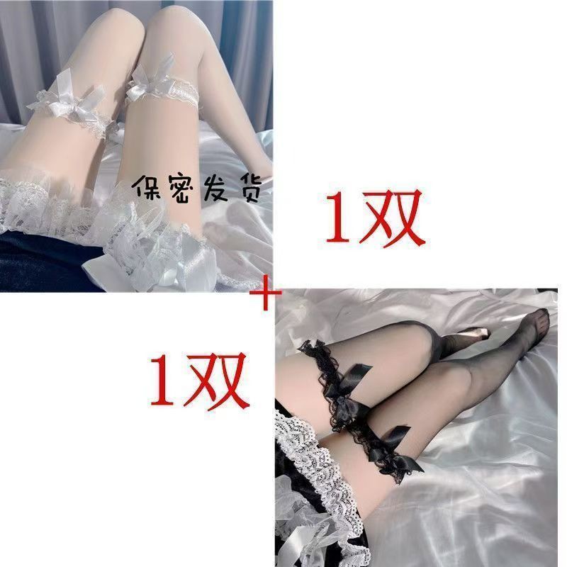 高筒蕾丝蝴蝶结【黑色1双+白色1双】