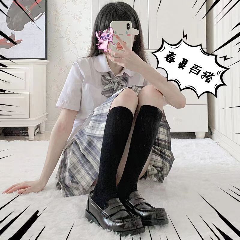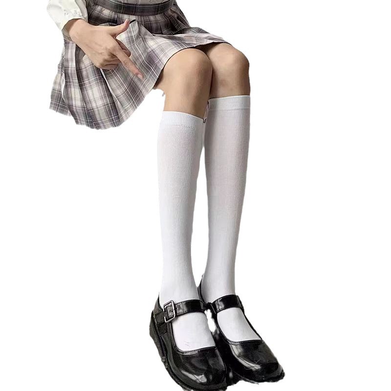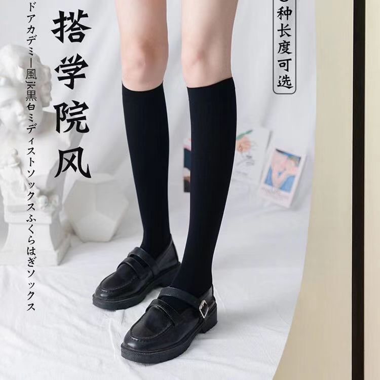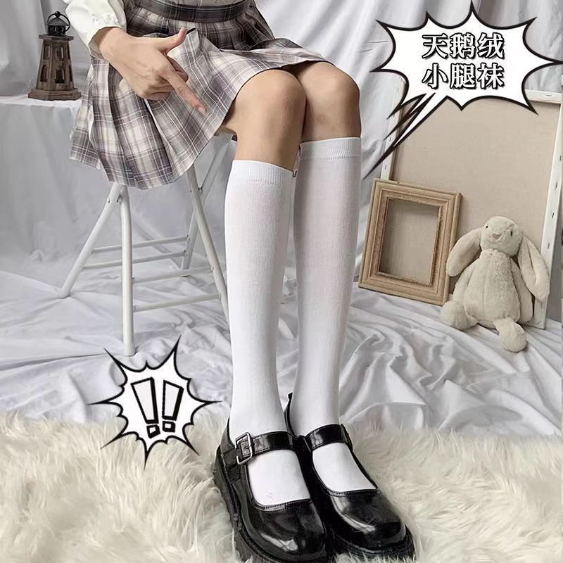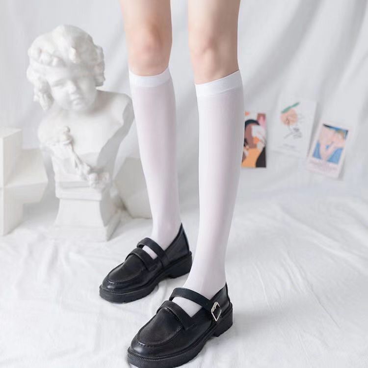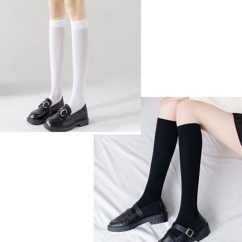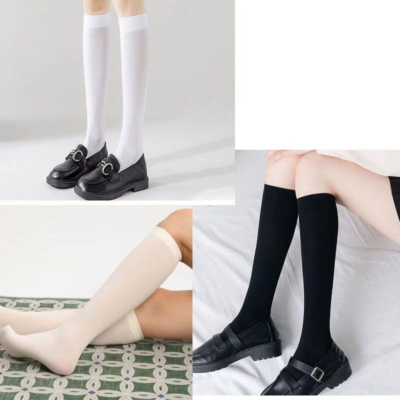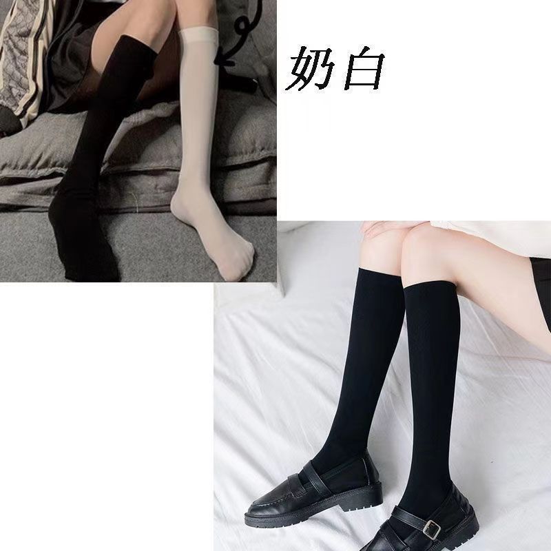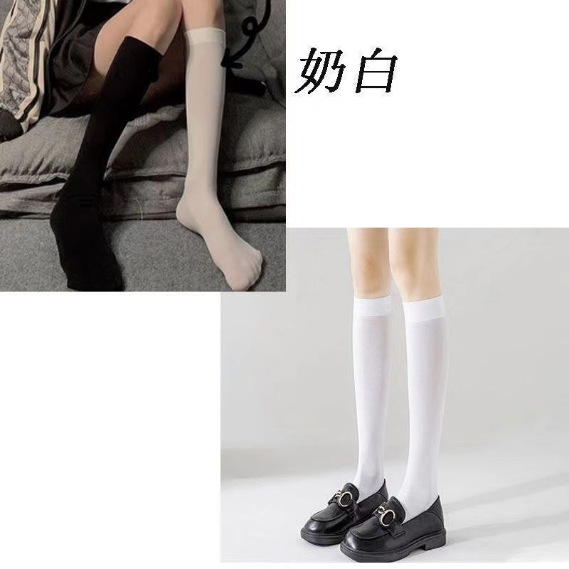 日系jk夏季中筒白色黑色米色不透明纯欲半筒袜压力瘦腿过膝袜天鹅