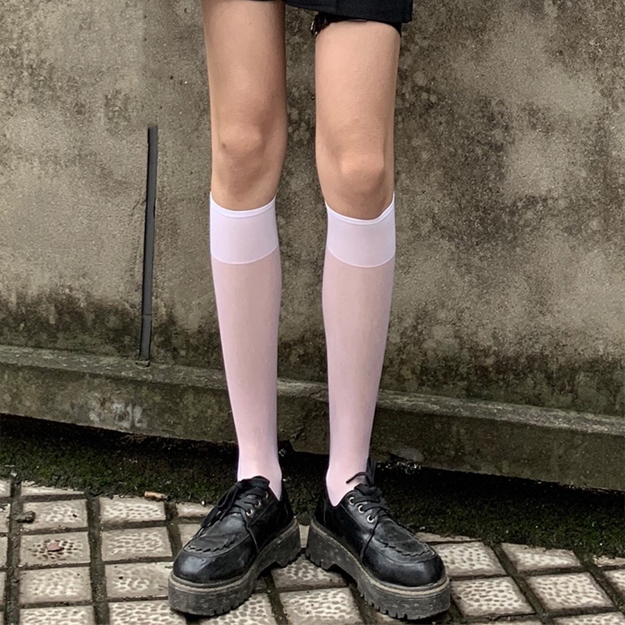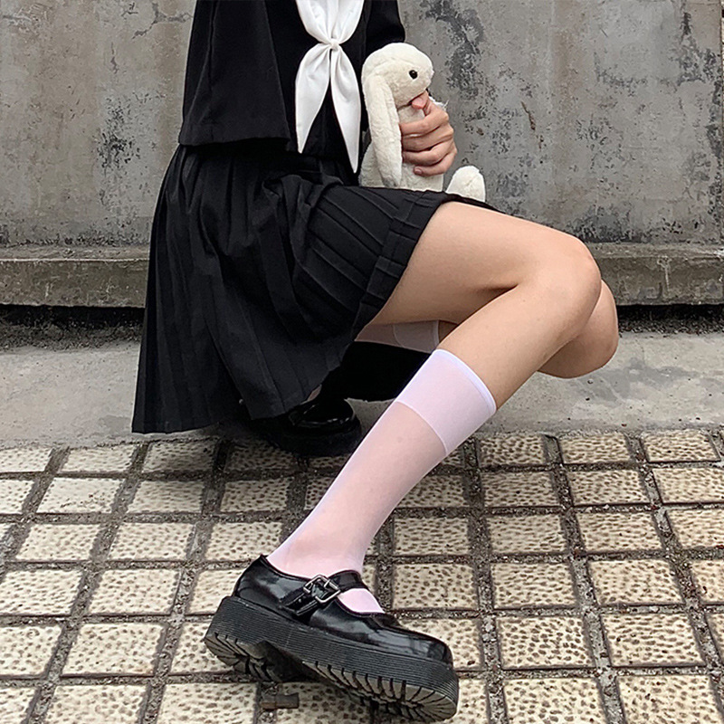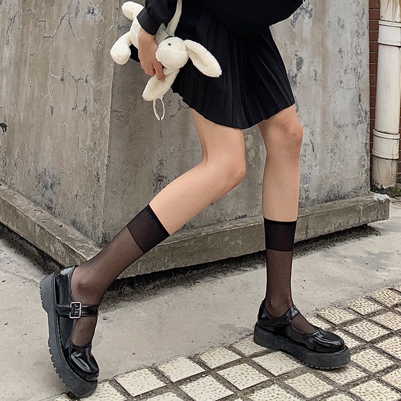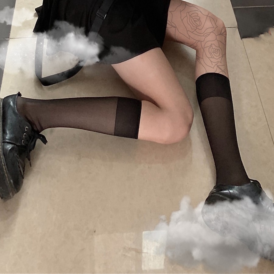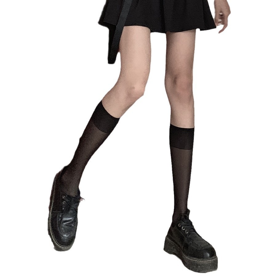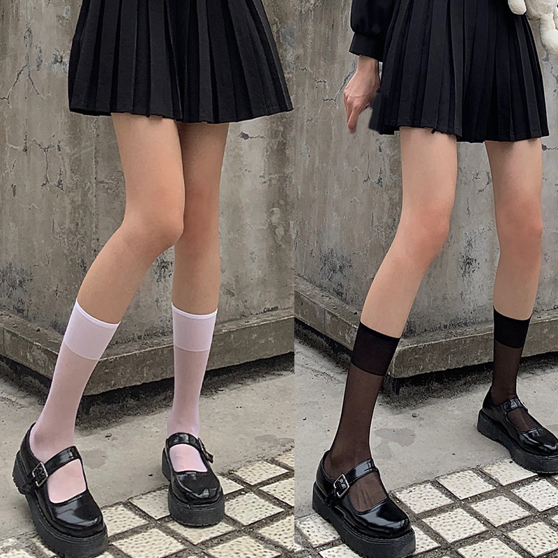 超薄透明丝袜jk白色小腿袜女夏季日系中筒袜女半筒袜黑色制服显瘦