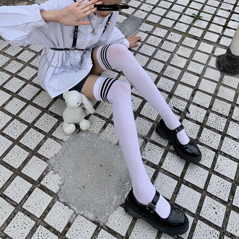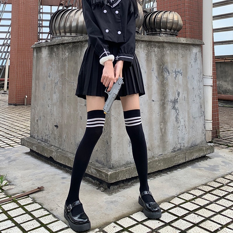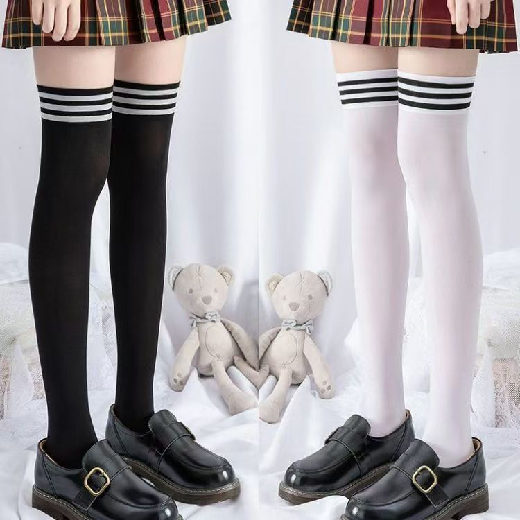 日系jk学院风过膝袜Lolita黑白条纹长筒袜子可爱女学生高筒袜春夏