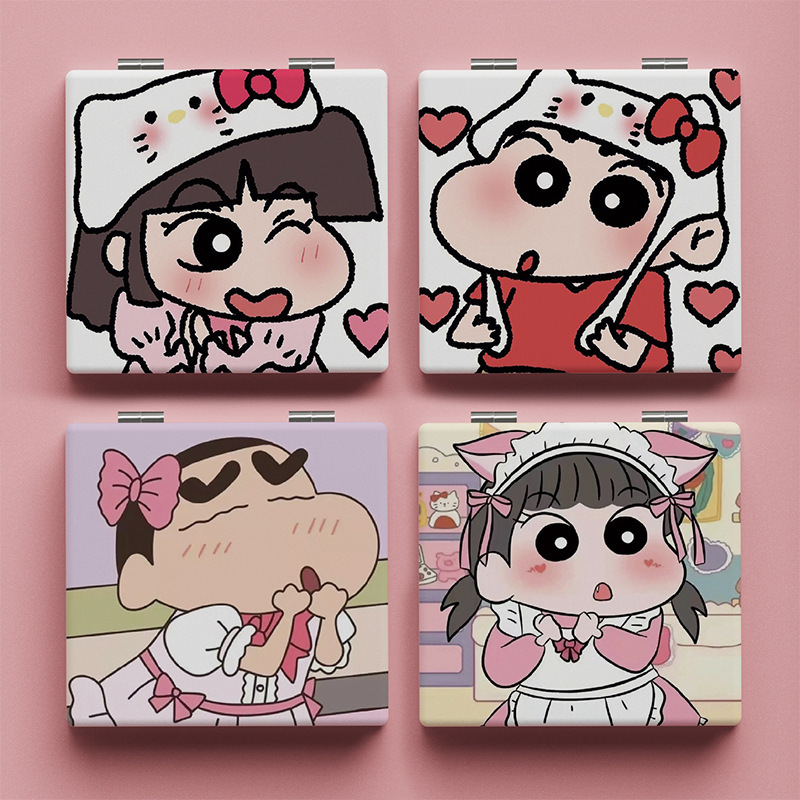 蜡笔小新折叠镜情侣款便携折叠双面镜手持闺蜜款补妆镜可爱小镜子
