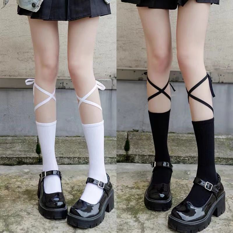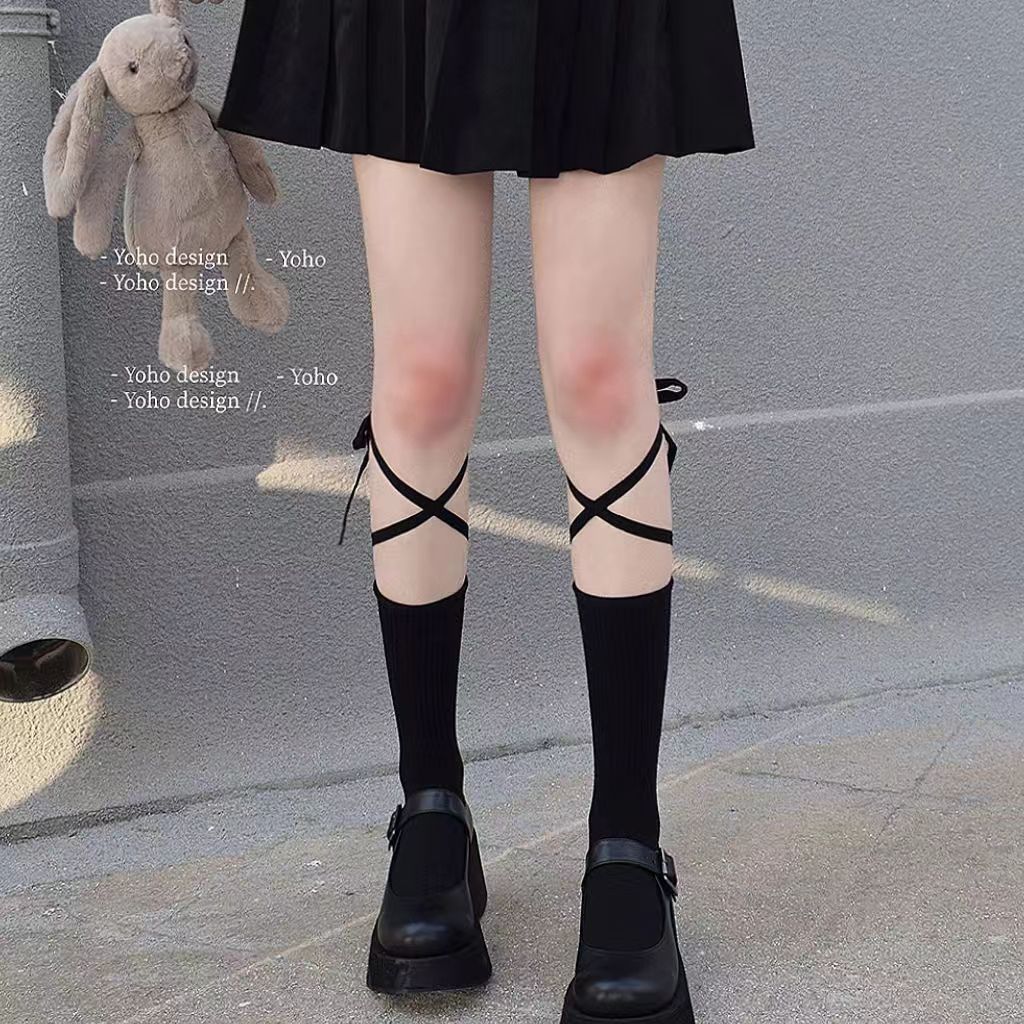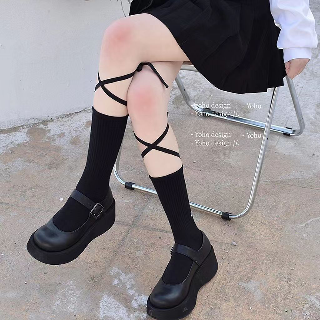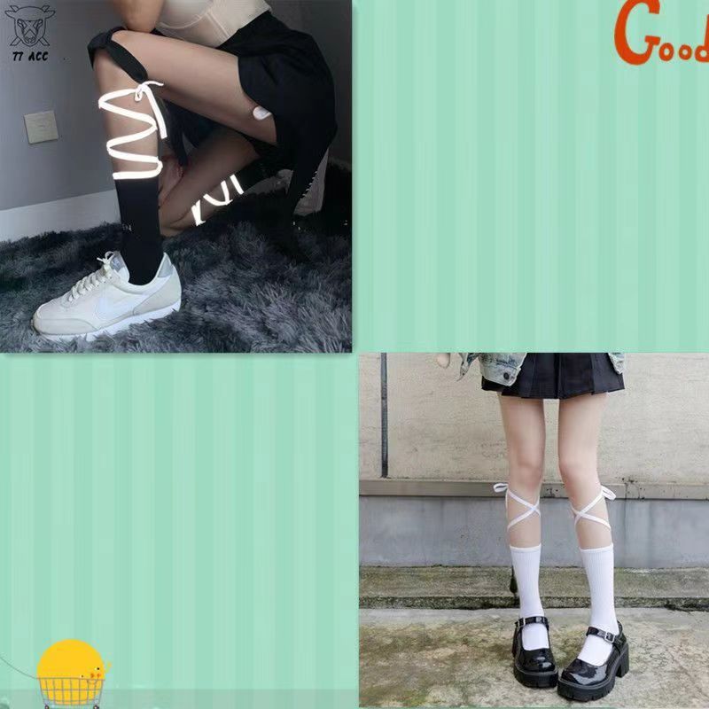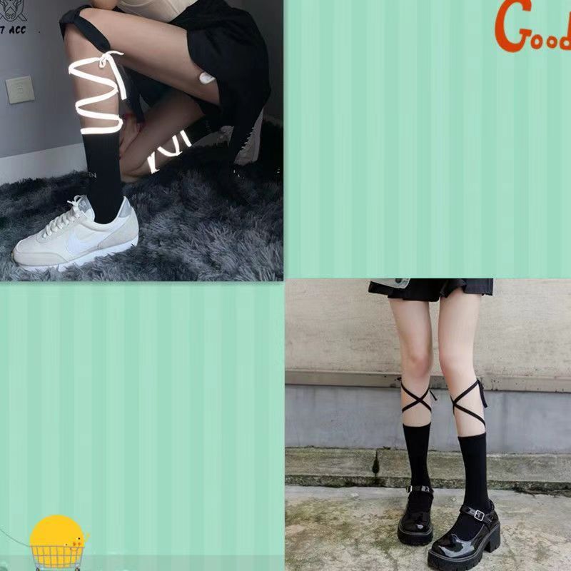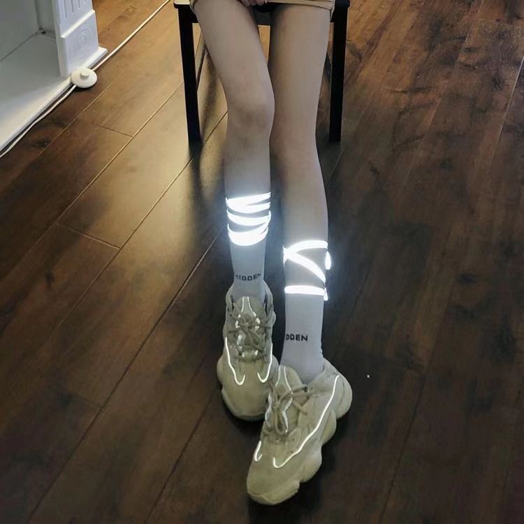 绑带袜子交叉夜光网红中筒袜女警示反光夏季薄款ins潮长袜街头jk