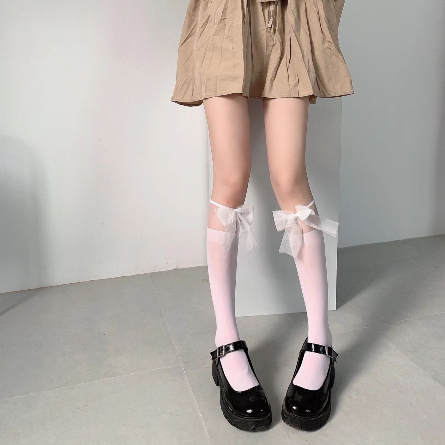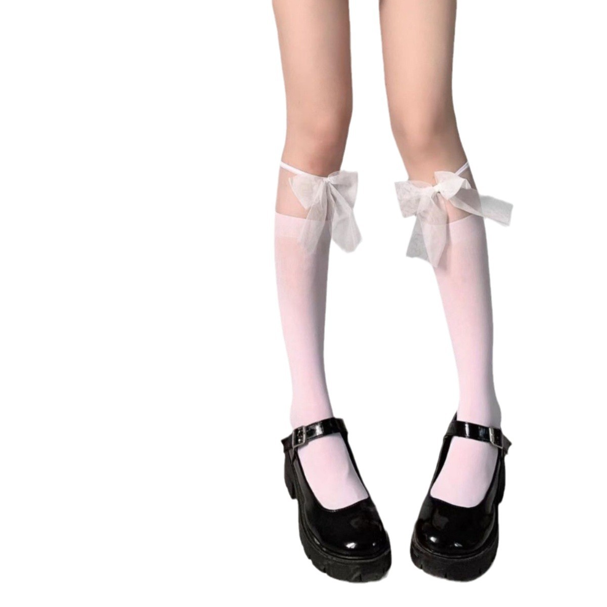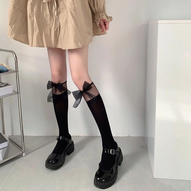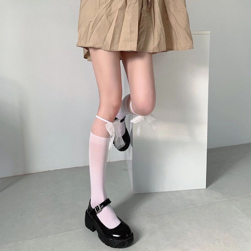 白色jk蕾丝袜拼接中筒袜子女春夏季薄款白丝袜蝴蝶结lolita小腿袜