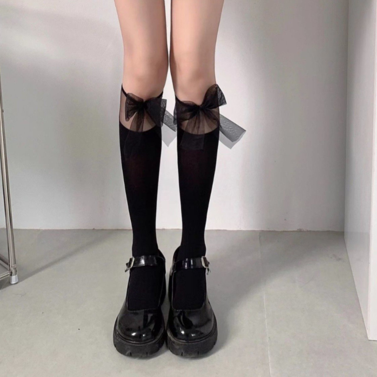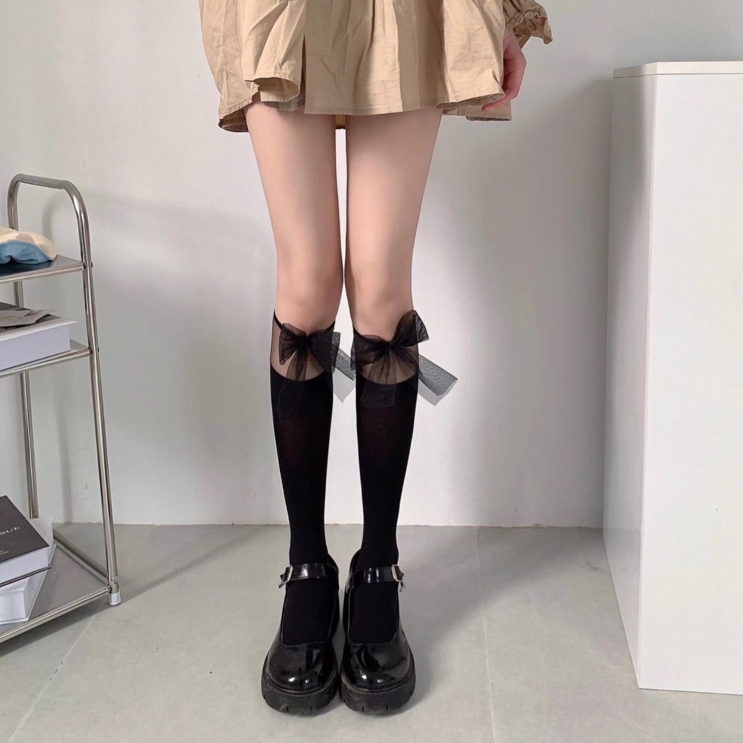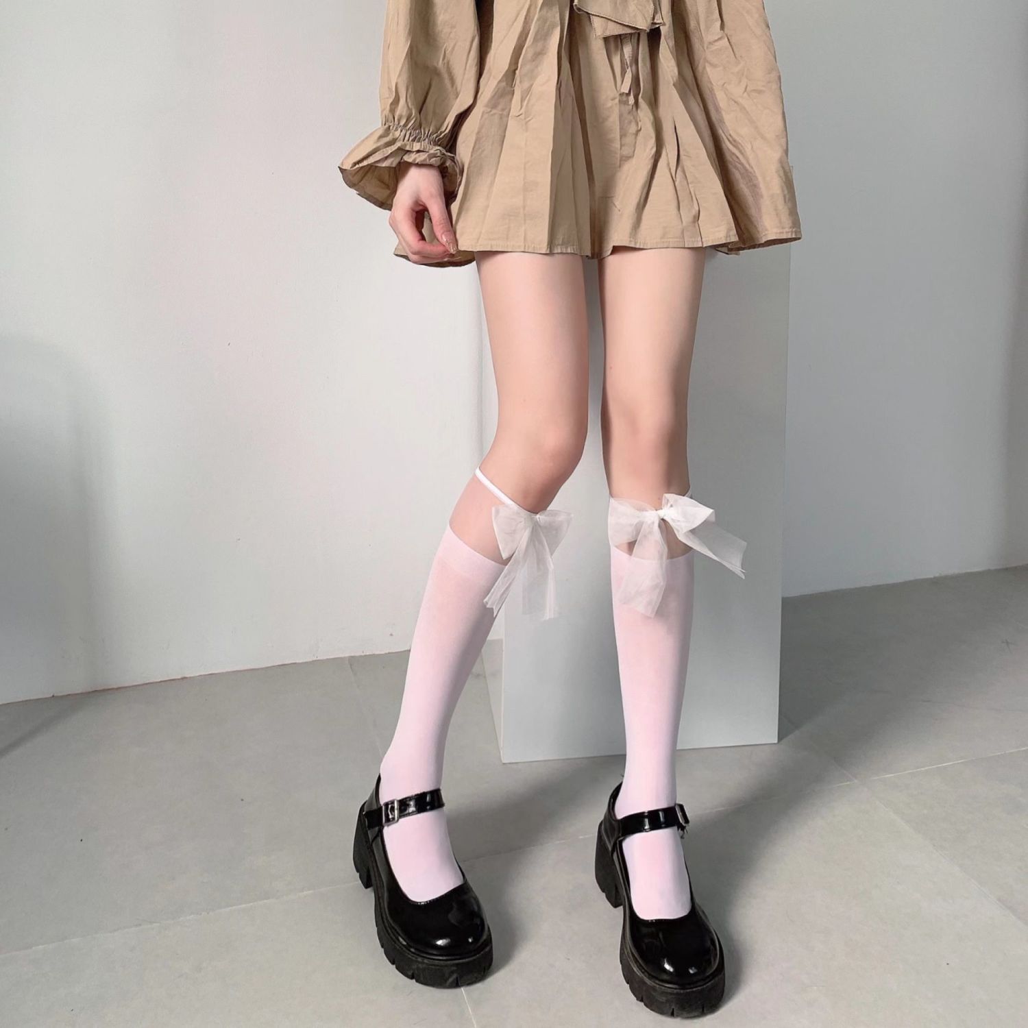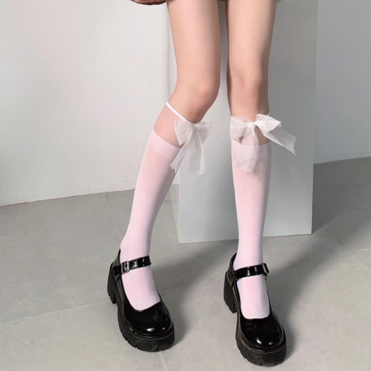 白色jk蕾丝袜拼接中筒袜子女春夏季薄款白丝袜蝴蝶结lolita小腿袜
