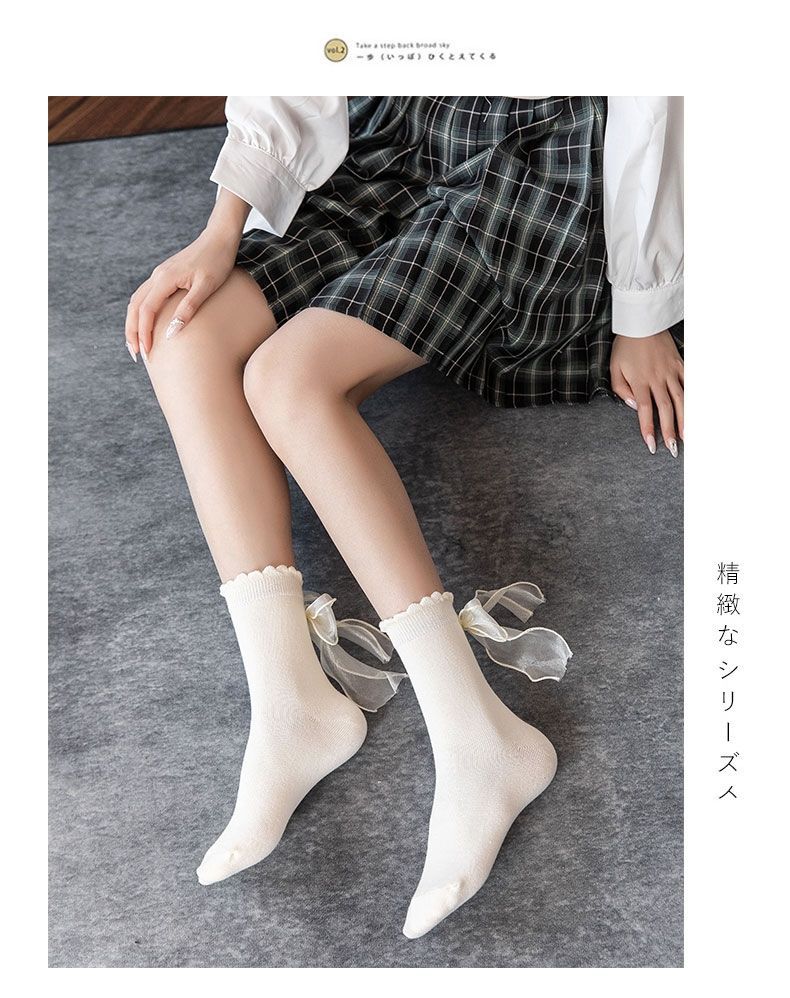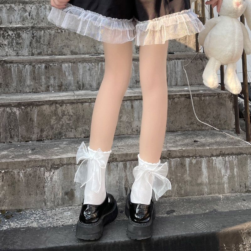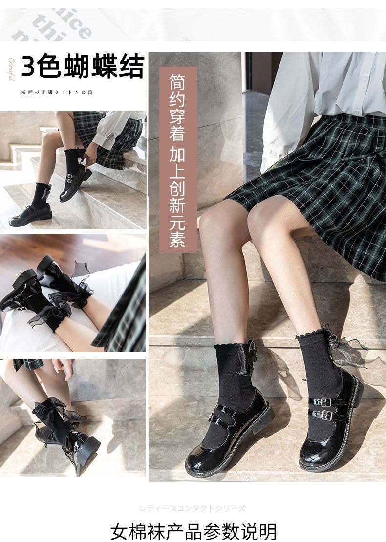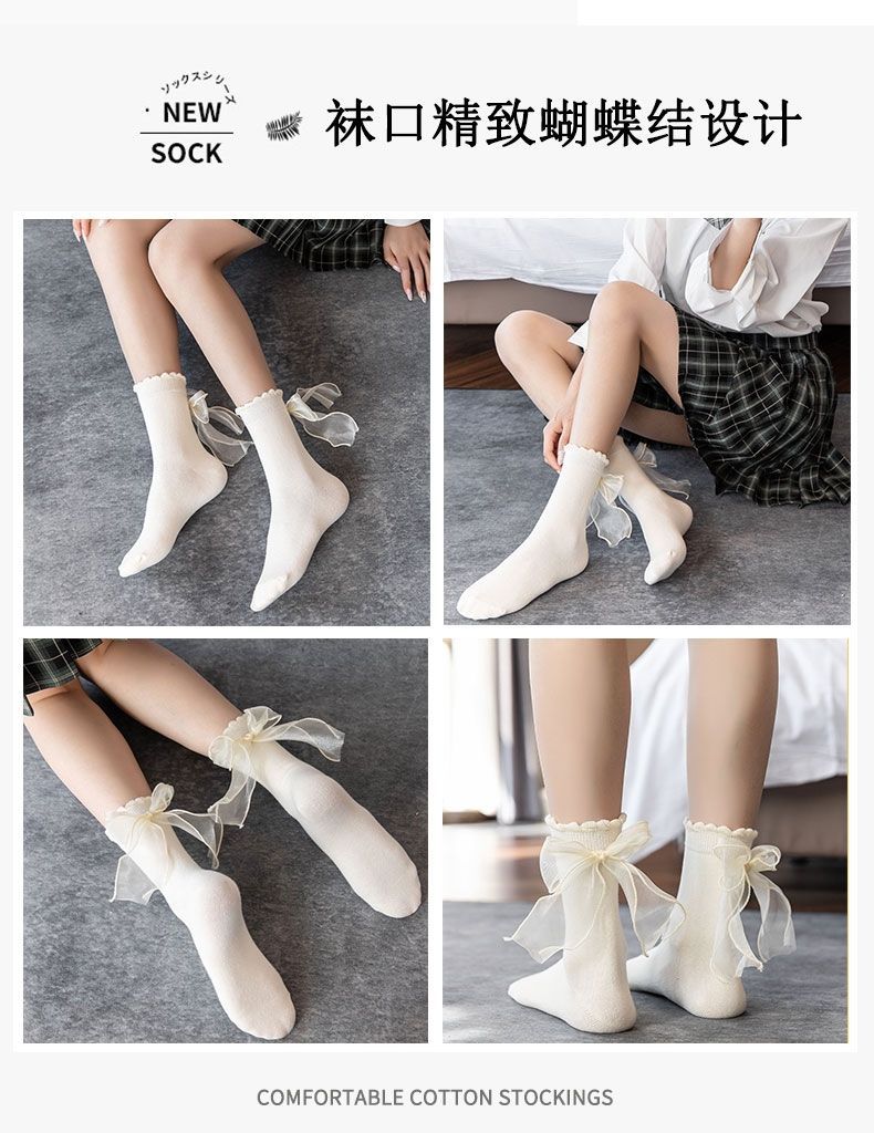 洛丽塔新款袜女ins潮中筒袜可爱百搭日系lolita蕾丝蝴蝶结公主花