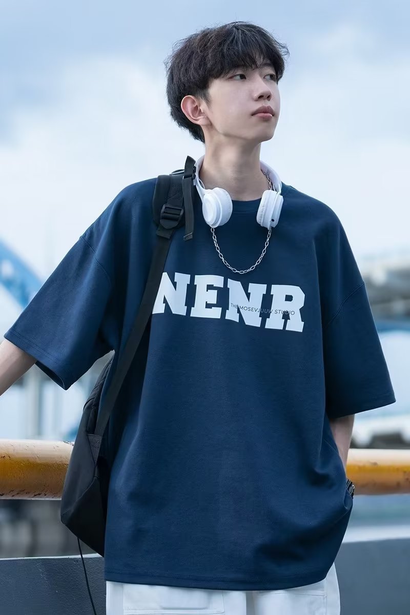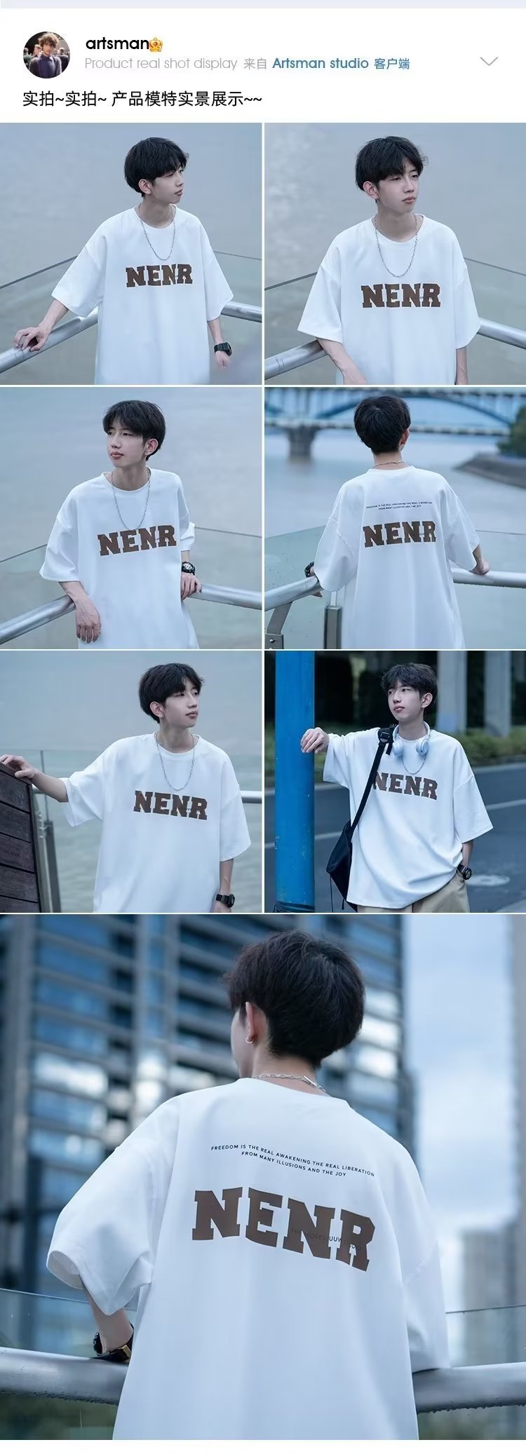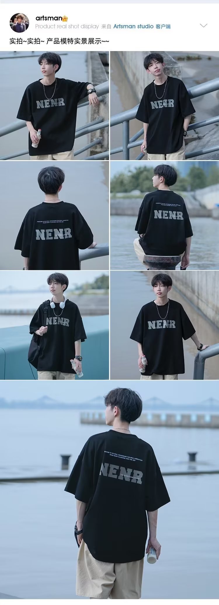 圆领短袖T恤男潮流宽松日系cityboy字母半袖夏季大码休闲百搭体恤