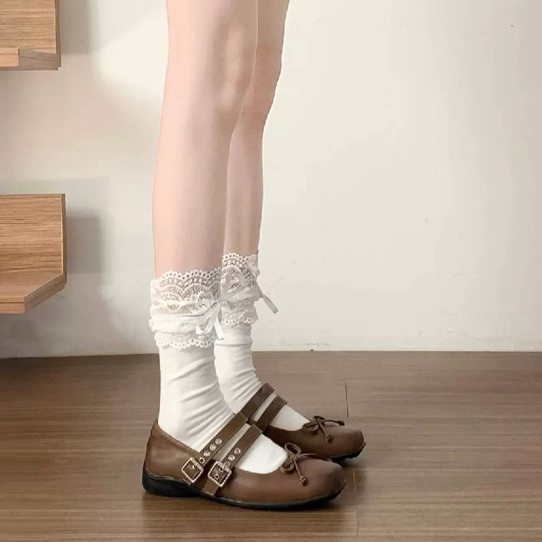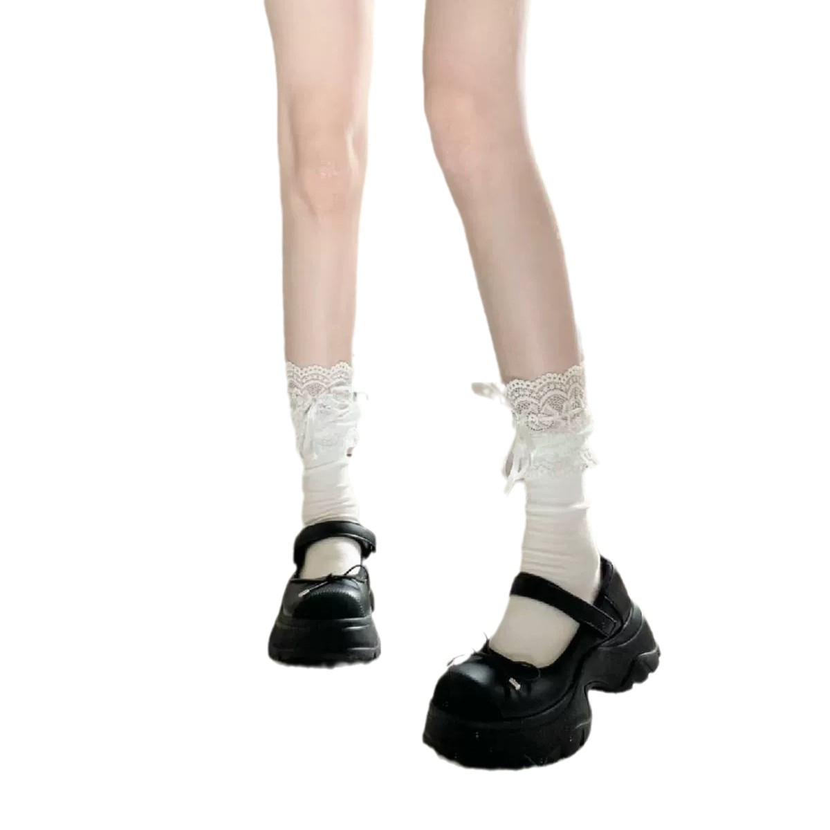 甜美日系袜子lolita蕾丝花边少女小腿袜可爱百搭白色jk韩版学院风