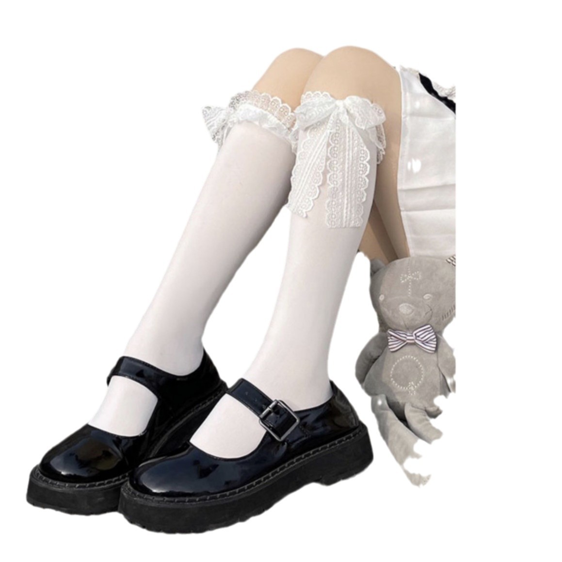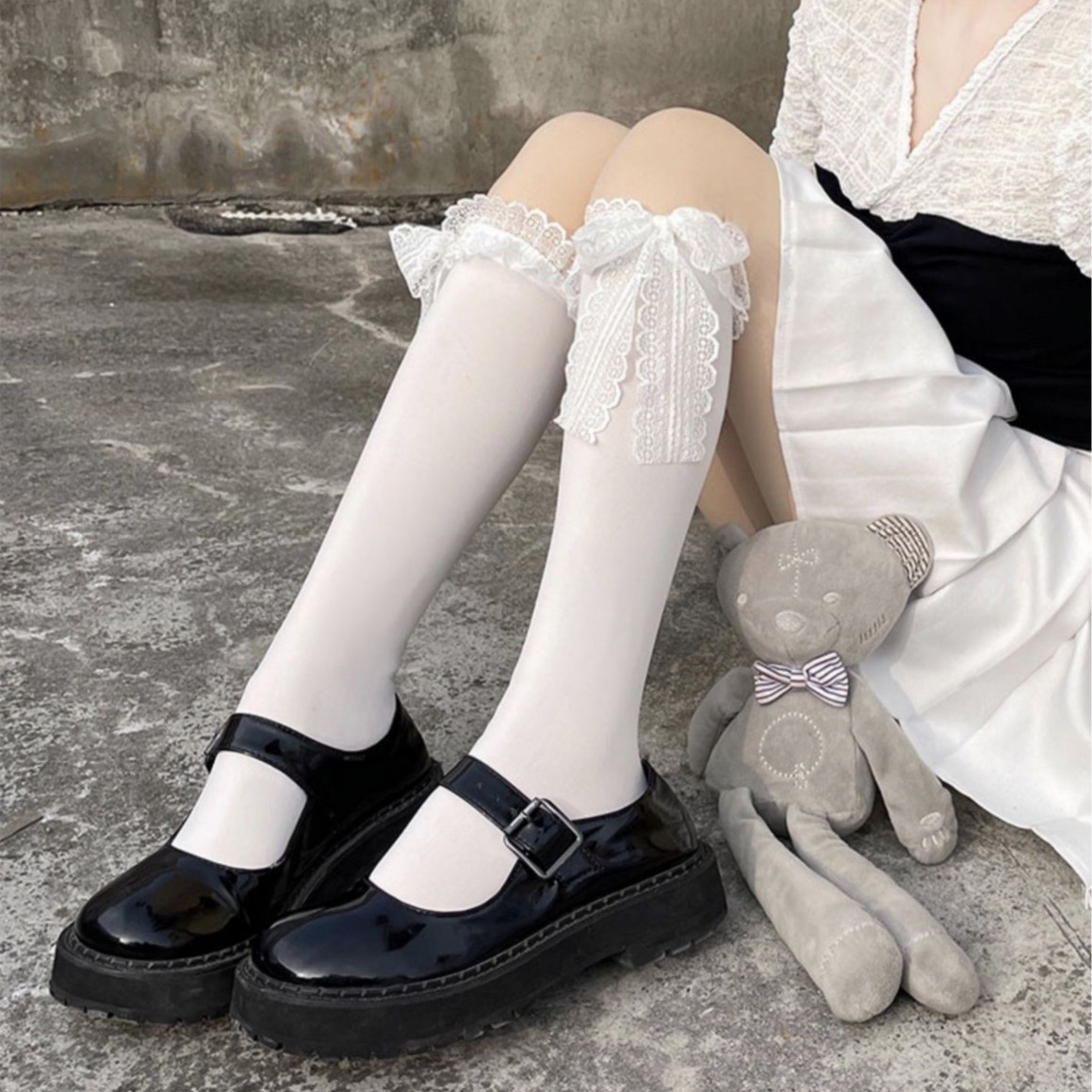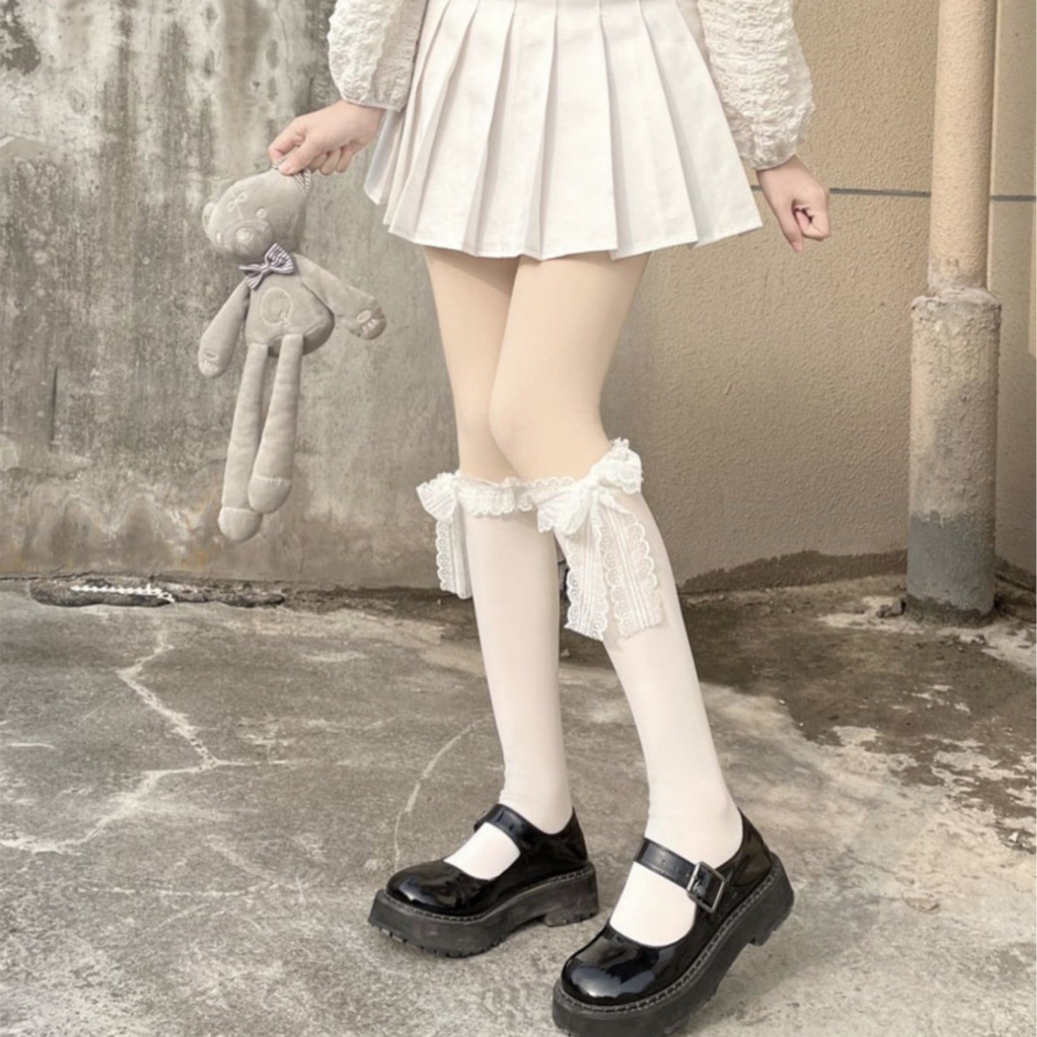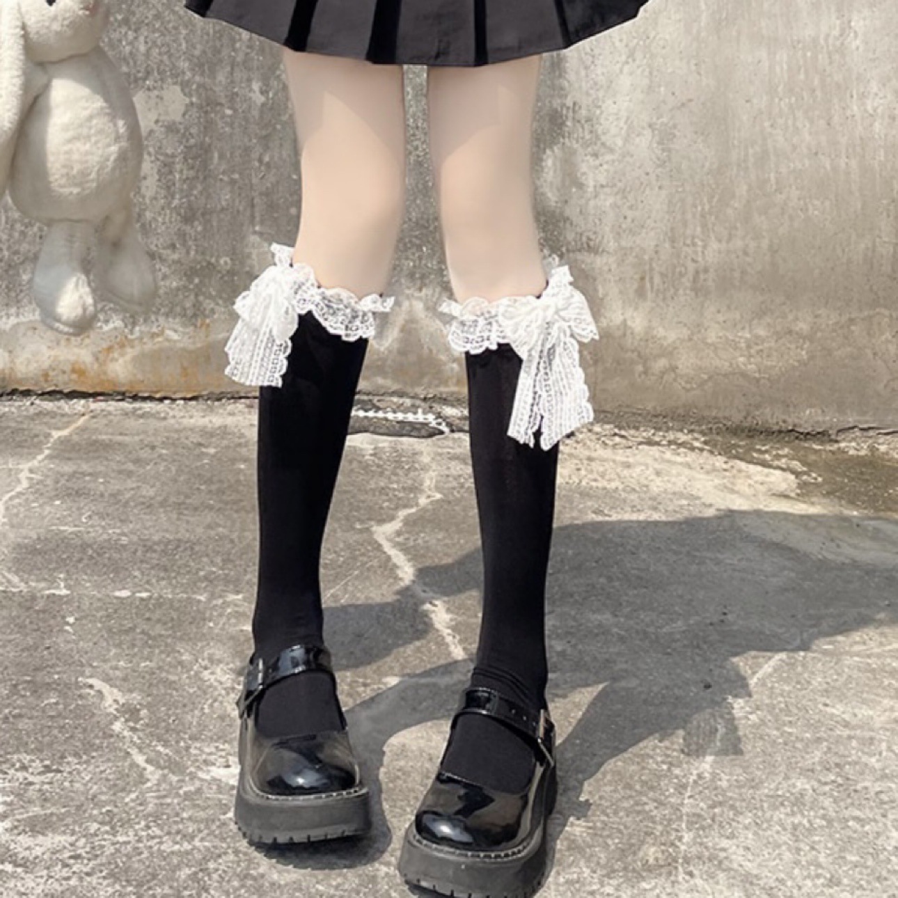 蕾丝小腿袜配靴子日系jk蝴蝶结女花边袜子lolita洛丽塔中筒袜春秋