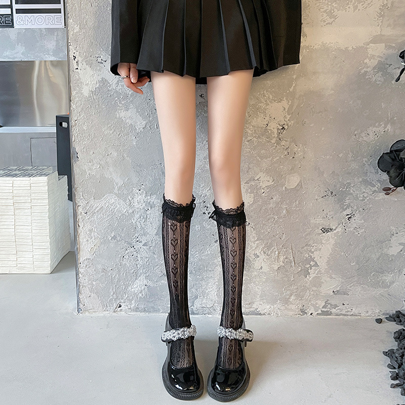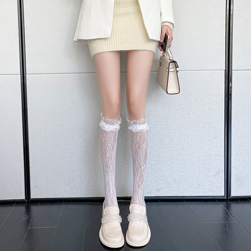白色中筒蕾丝花边袜jk可爱日系洛丽塔袜子软妹少女可爱镂空小腿袜