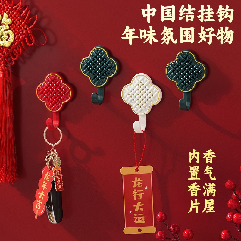新年红色喜庆挂钩免打孔壁挂强力承重无痕粘胶粘钩门后中国结钩子
