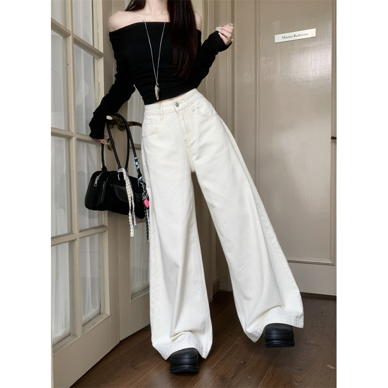 美式阔腿牛仔裤女高腰宽松显瘦直筒垂感拖地长裤