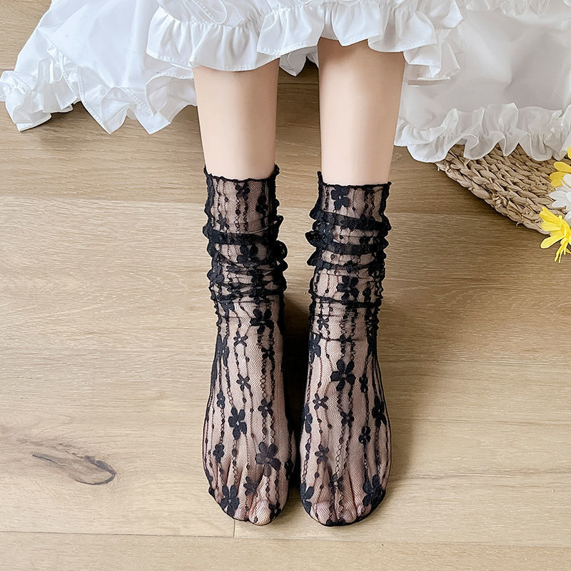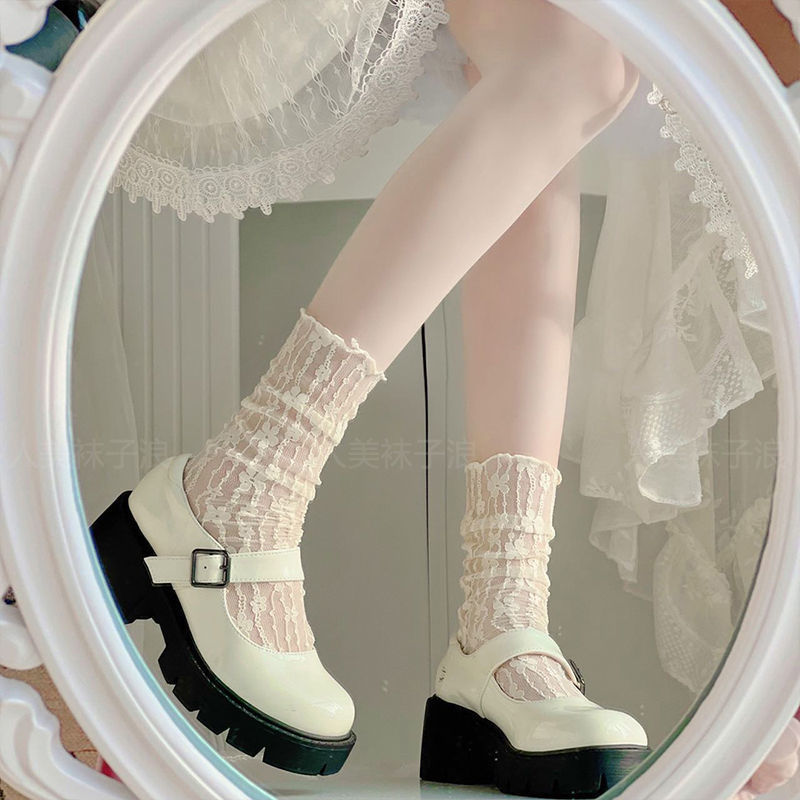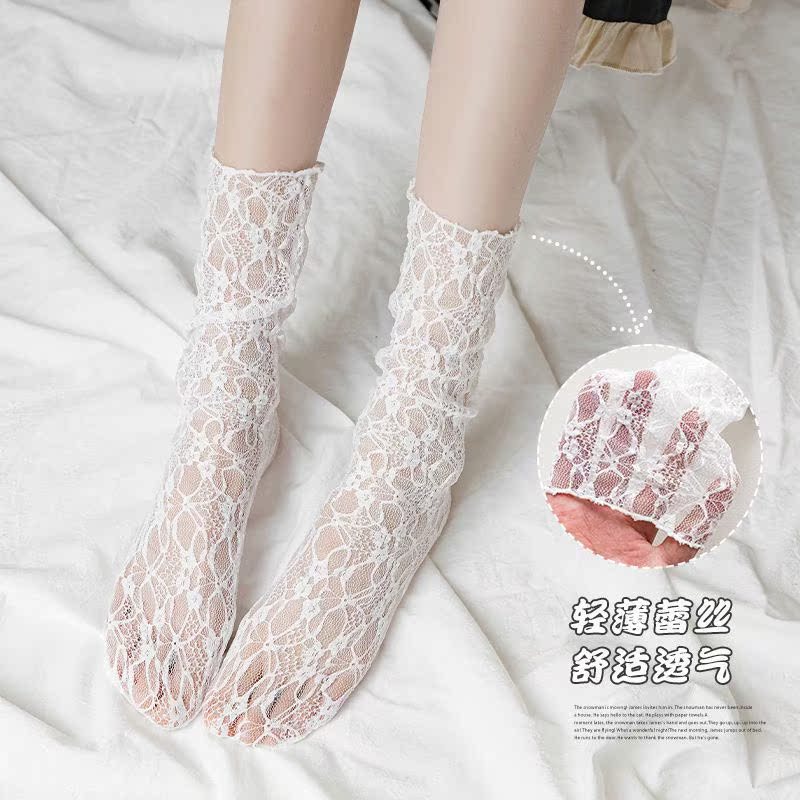 堆堆袜女中筒袜夏季薄款网纱花边夏天日系玛丽珍夏款欧根纱jk纯欲