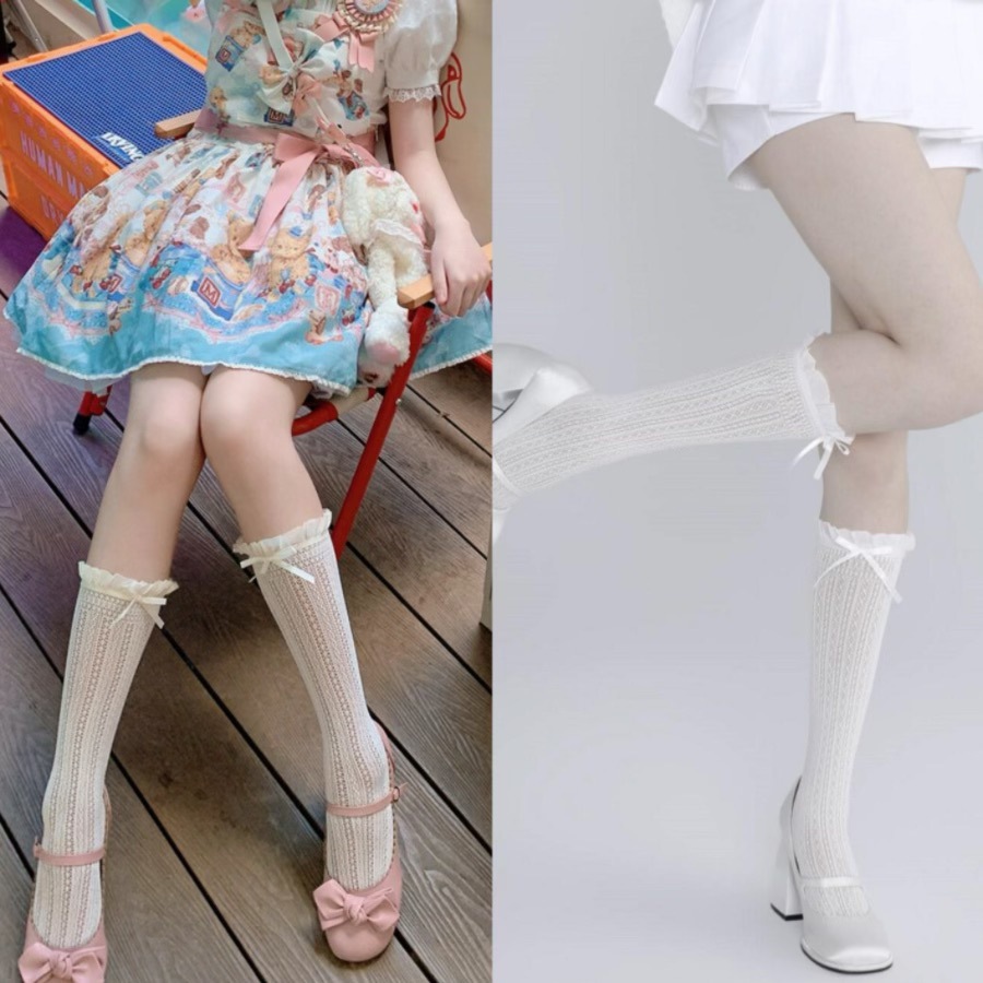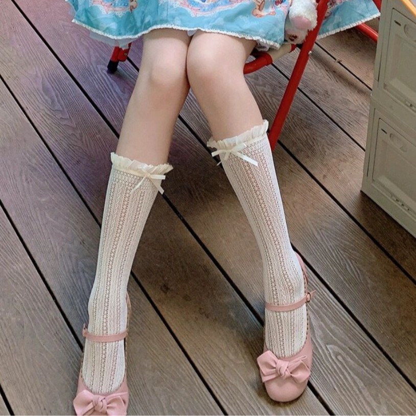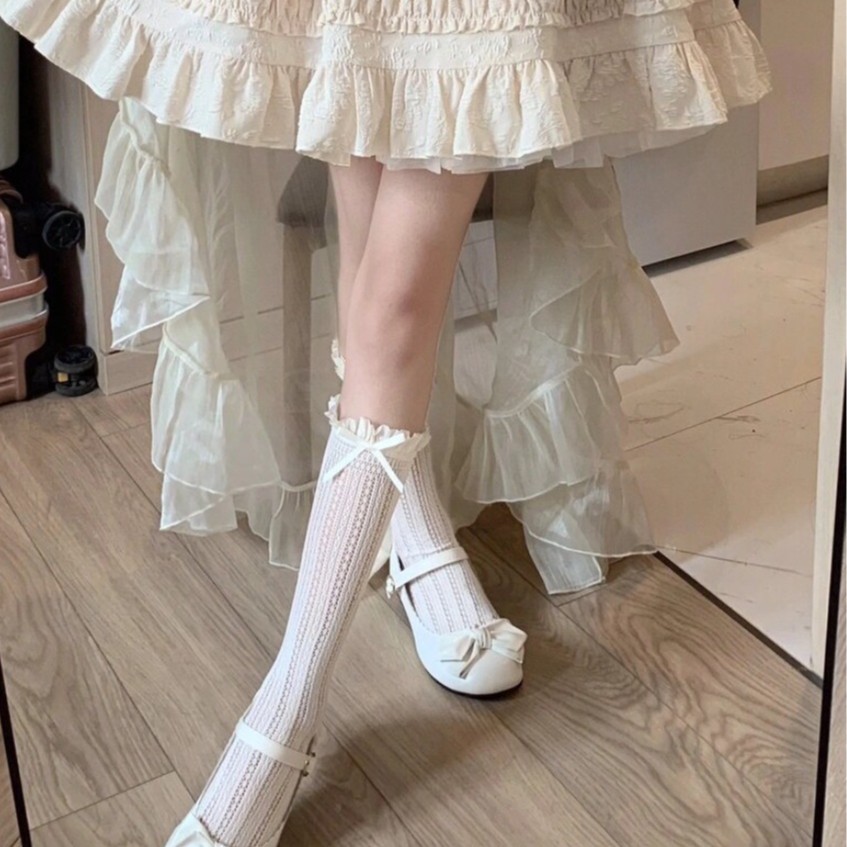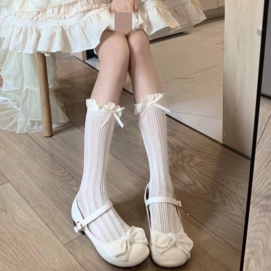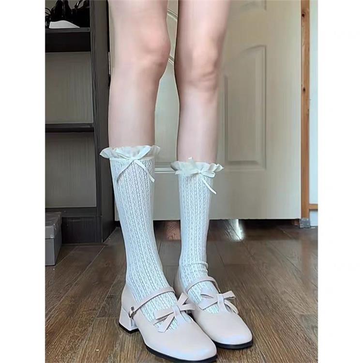 白色法式花边蝴蝶结袜子女蕾丝镂空小腿jk袜玛丽珍日系网红爆款