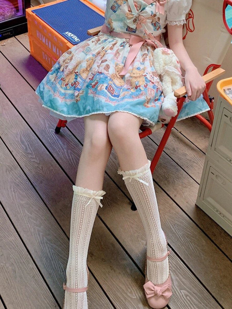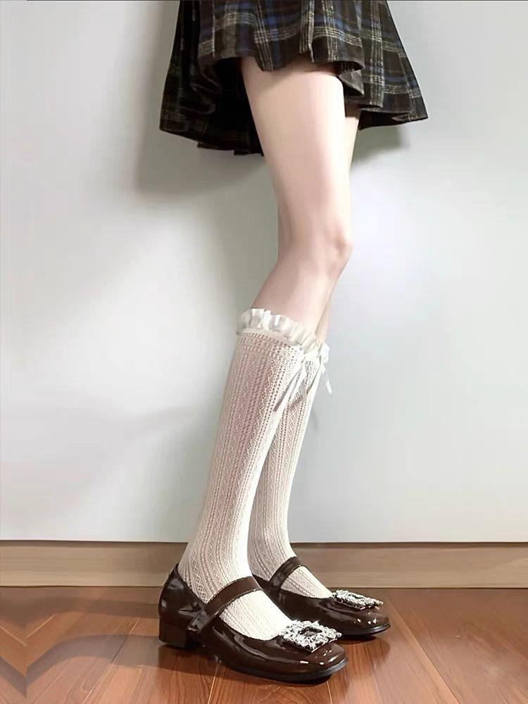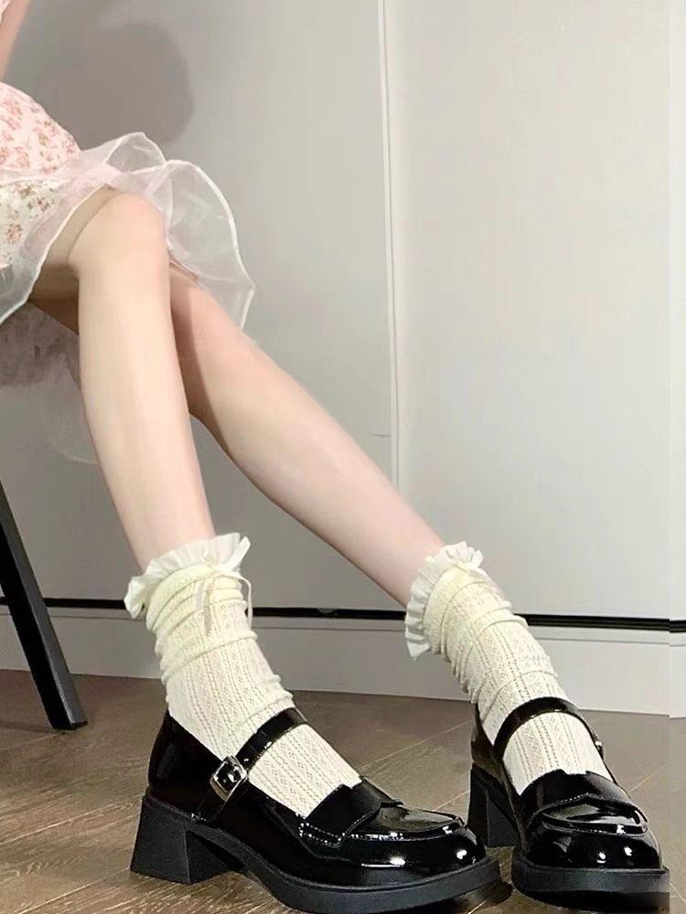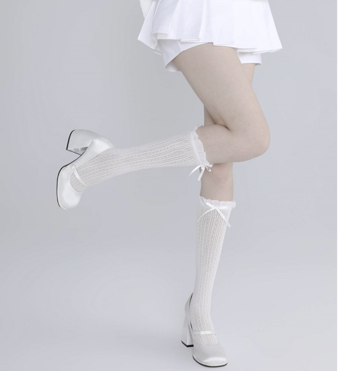 白色法式花边蝴蝶结袜子女蕾丝镂空小腿jk袜玛丽珍日系网红爆款