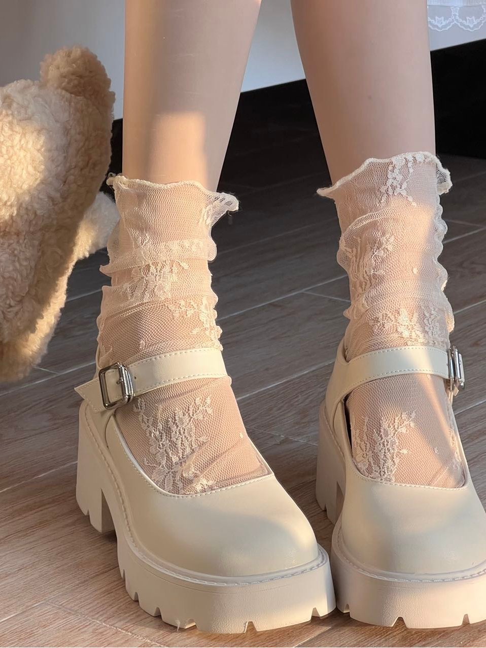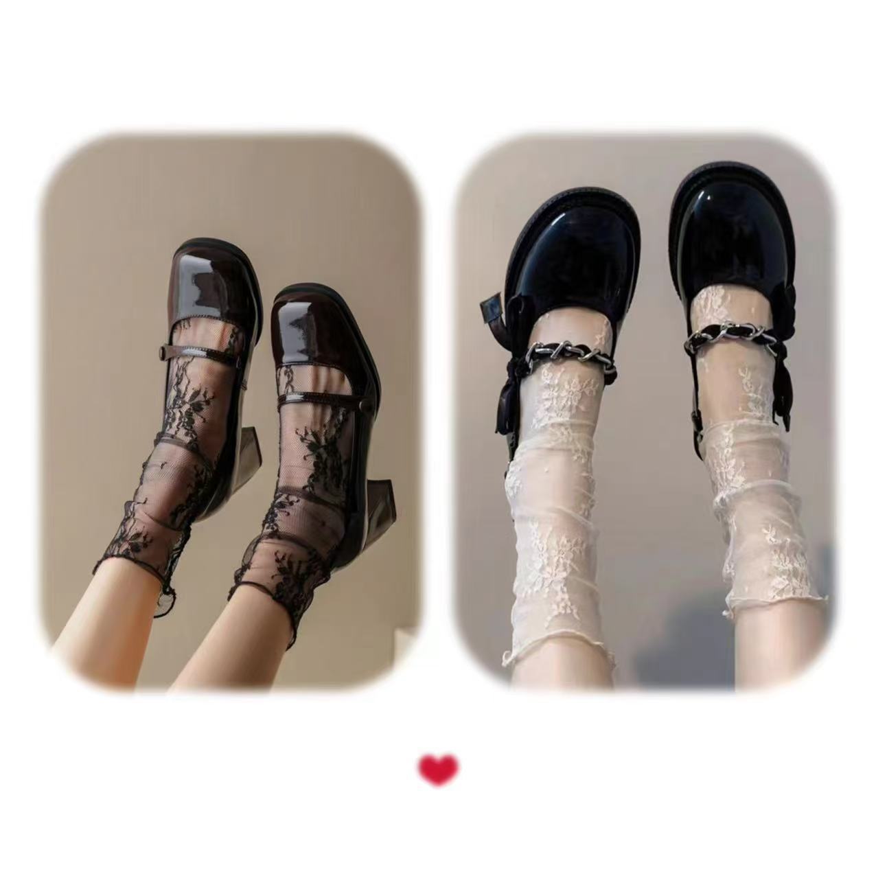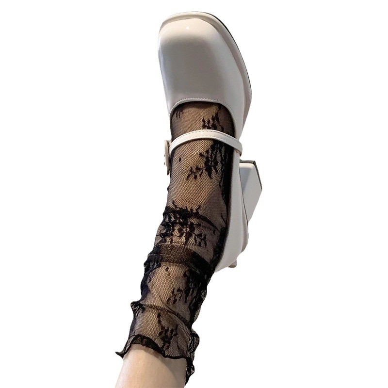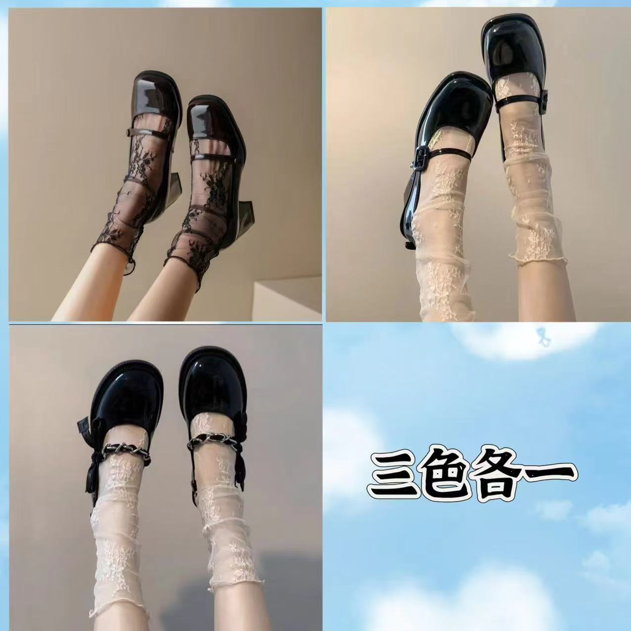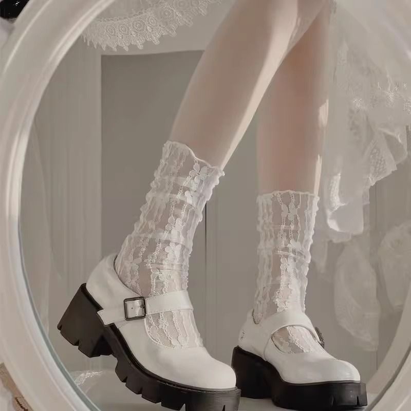 白色蕾丝堆堆袜子女中筒袜夏季网纱薄款jk花朵玛丽珍仙女袜子水晶