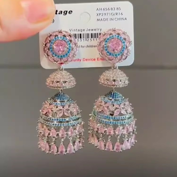 韩式重工华丽名媛耳钉高级感晚宴聚会耳坠时尚百搭宫廷风满锆耳饰