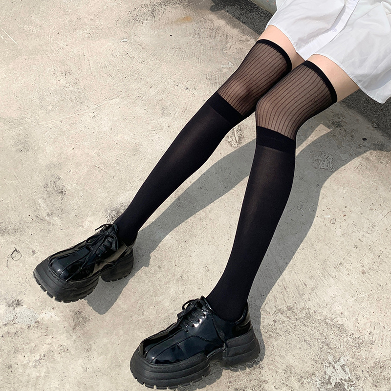 网红超火过膝袜 夏天黑丝性感白丝纯欲洛丽塔jk袜子薄款大腿袜潮