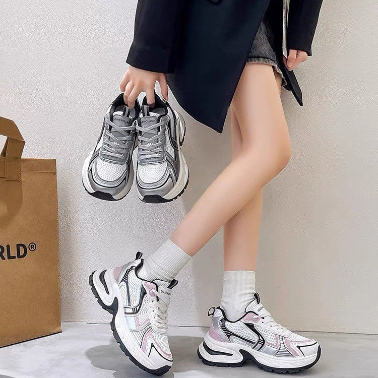 网面百搭休闲跑步运动鞋春秋透气小个子厚底增高老爹潮鞋