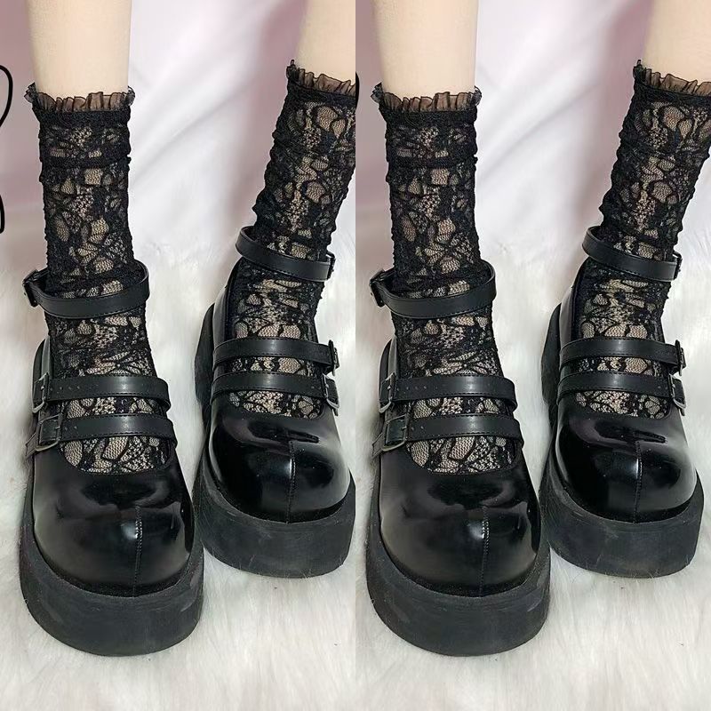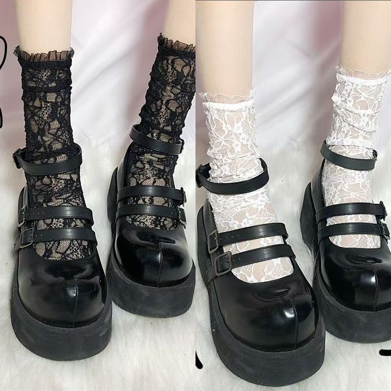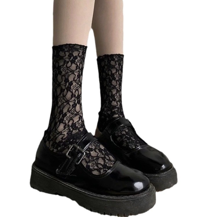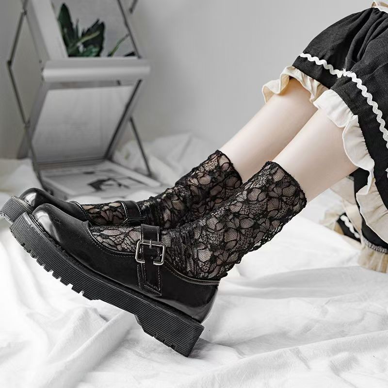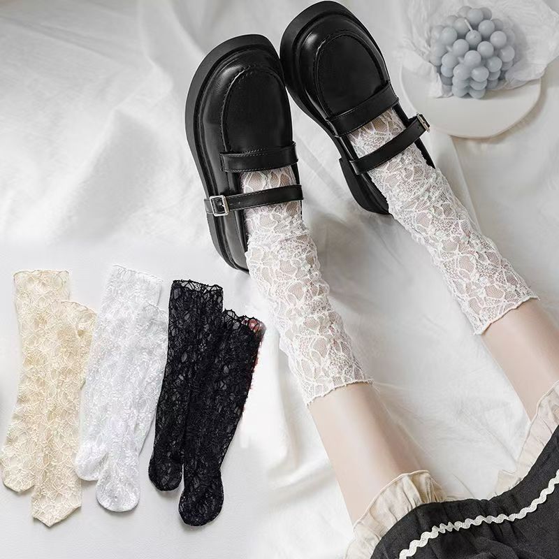白色蕾丝袜子女夏季薄款玛丽珍网纱堆堆袜中筒甜美可爱小碎花丝袜