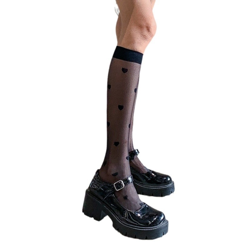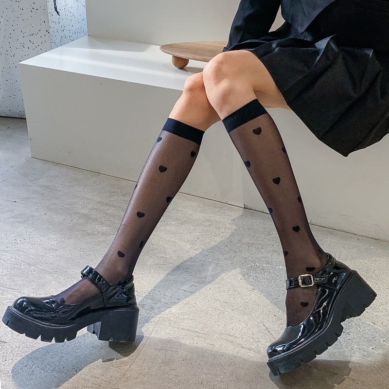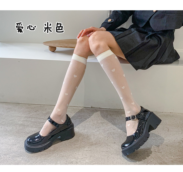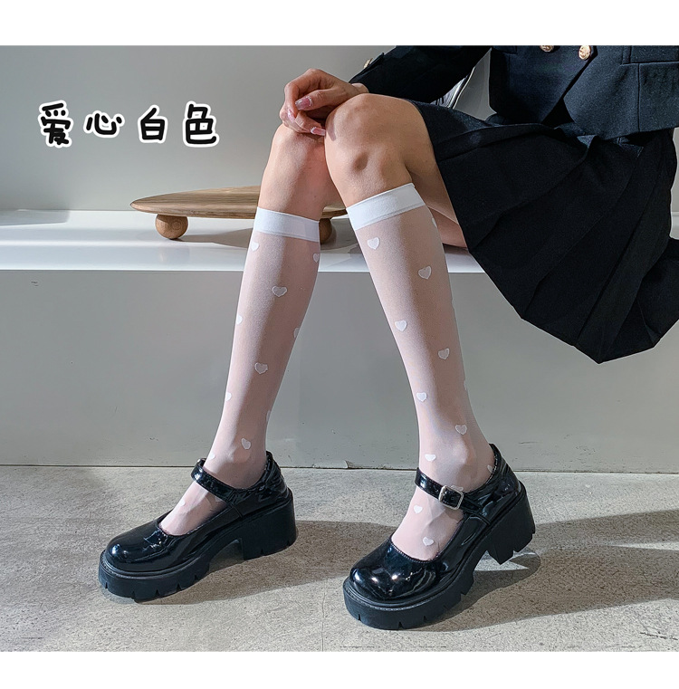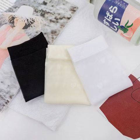 夏季新款JK小腿袜冰丝袜透明小腿袜女透气百搭中筒袜超薄黑丝及膝