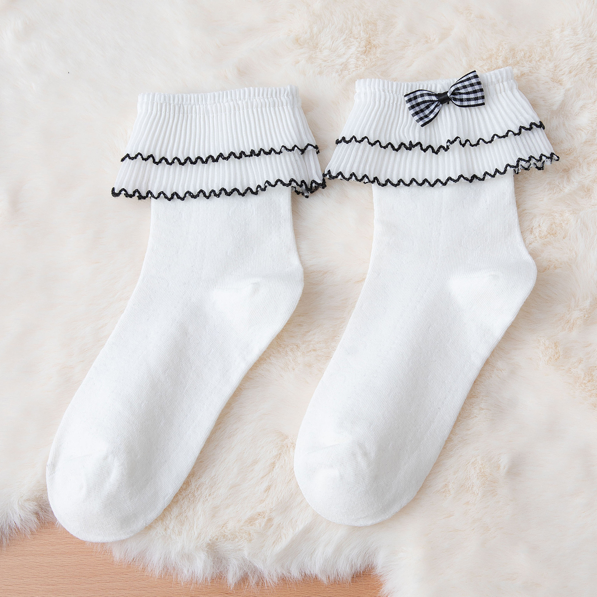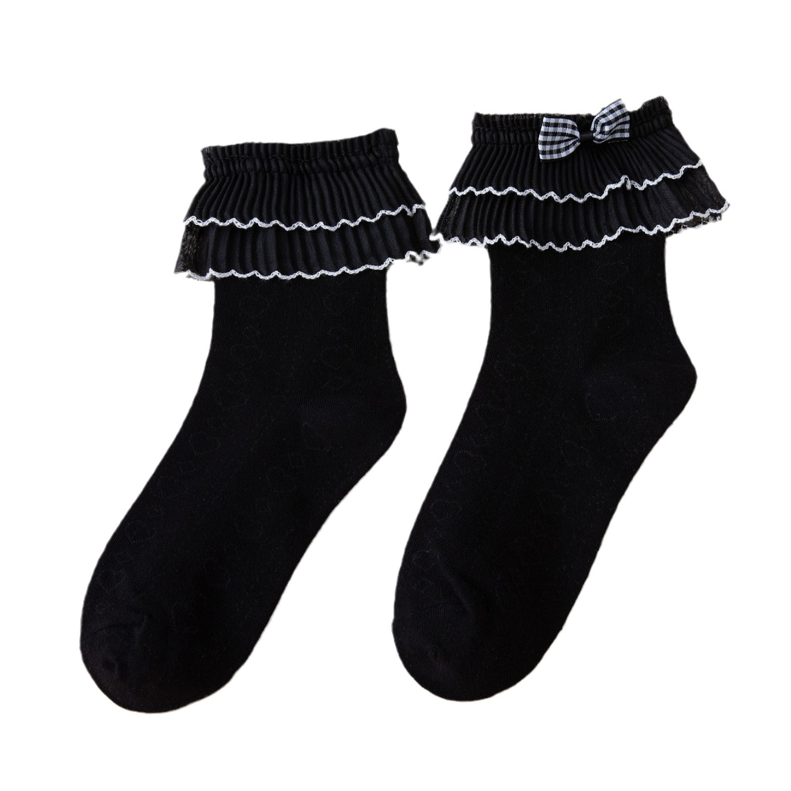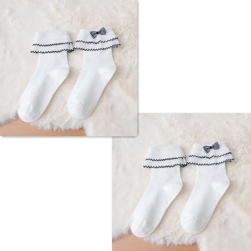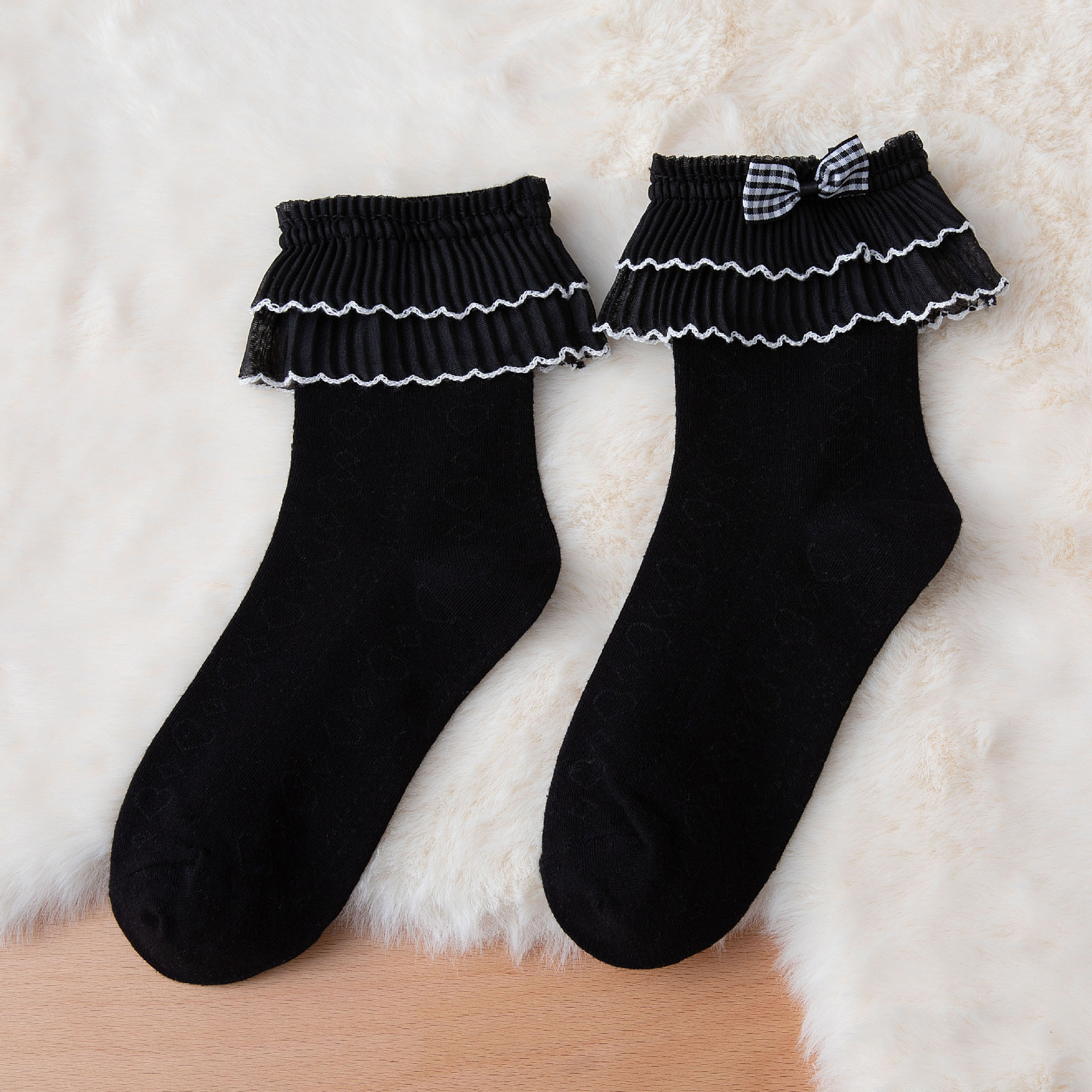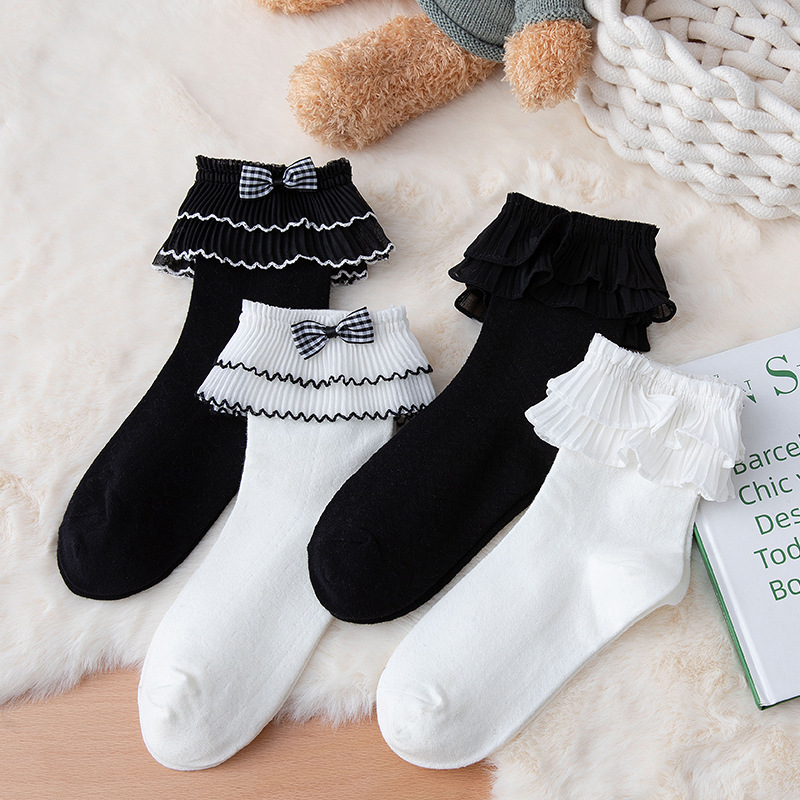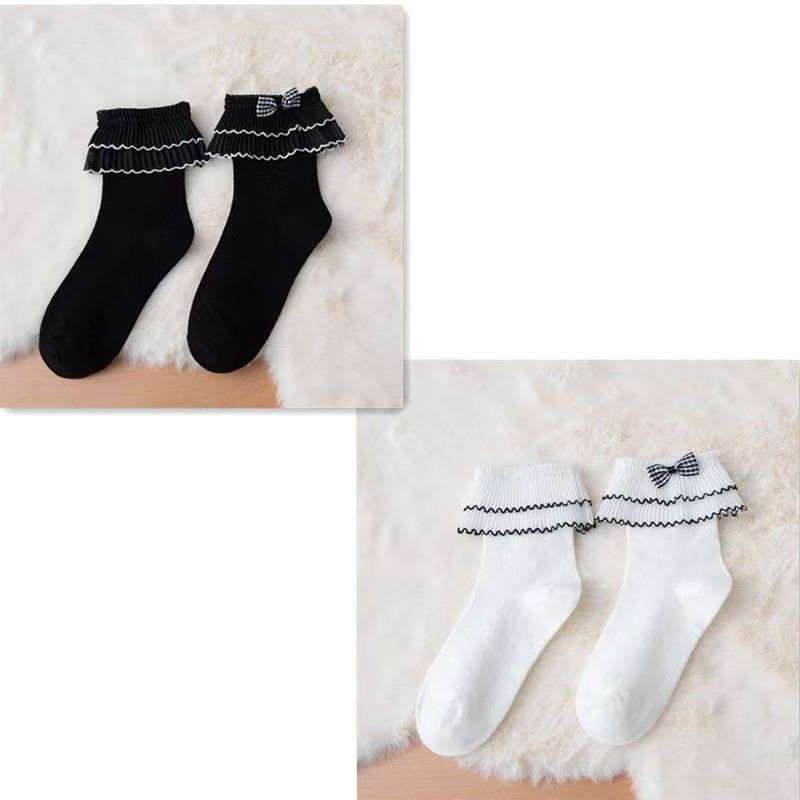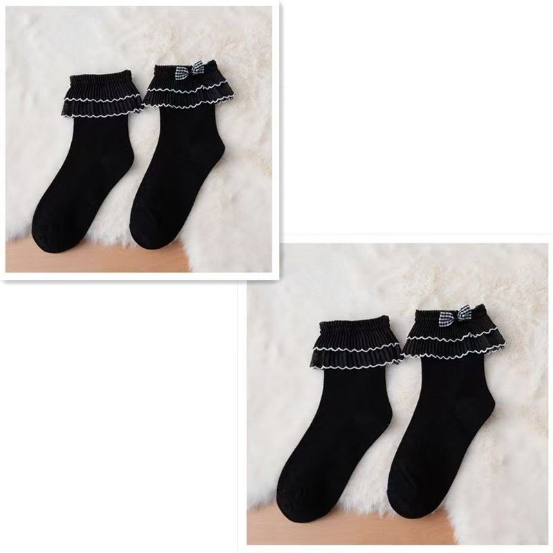 日系可爱蝴蝶结lolita公主袜白色黑色JK制服花边袜子女中筒袜
