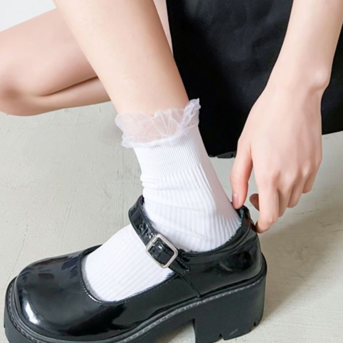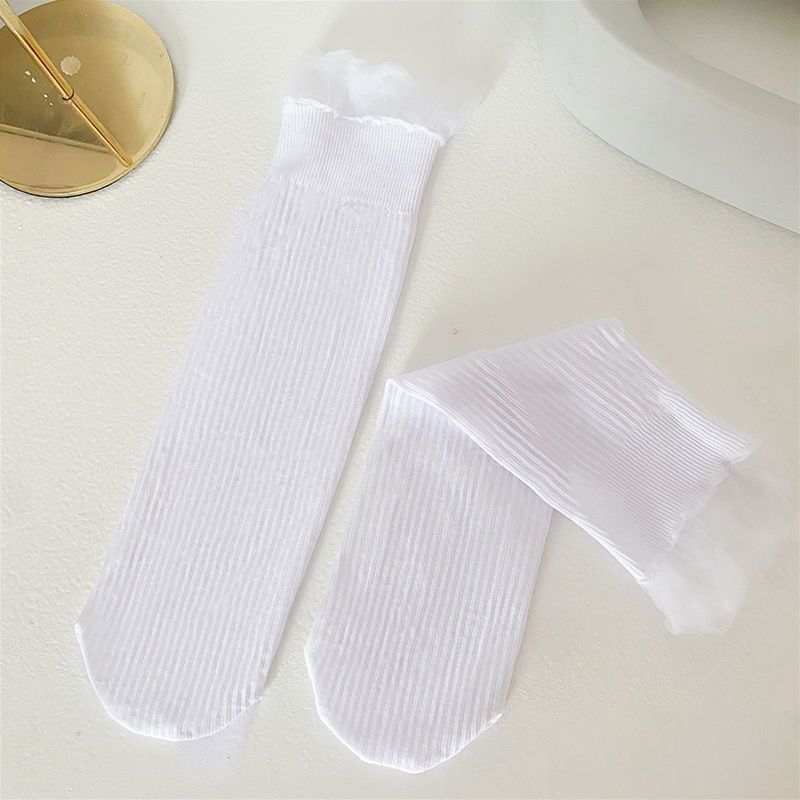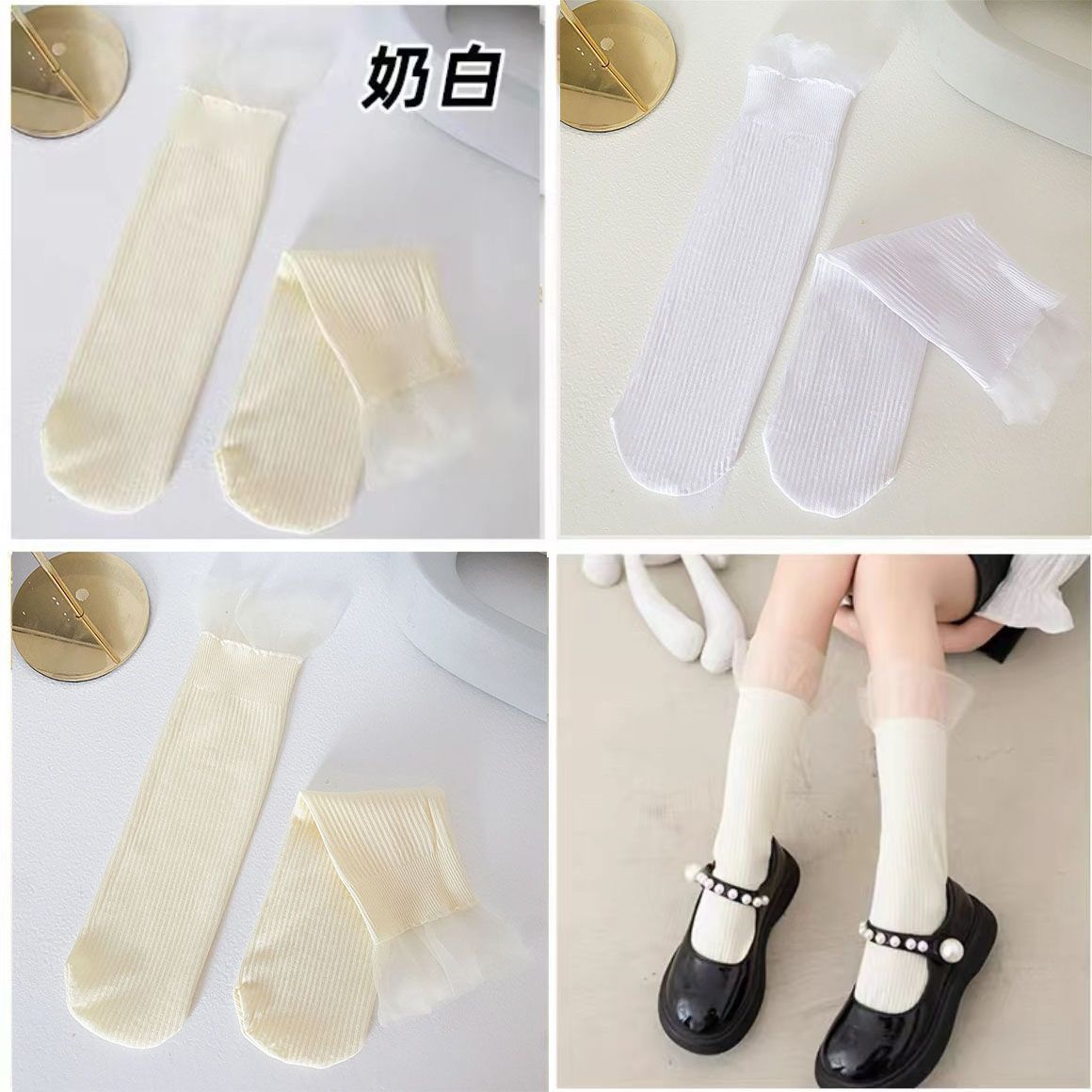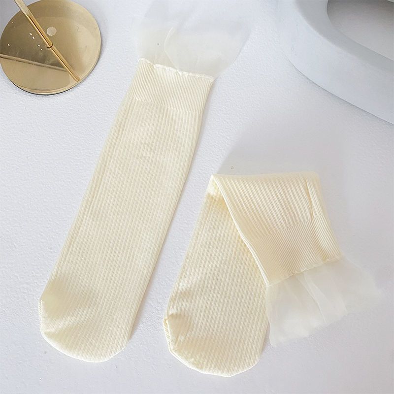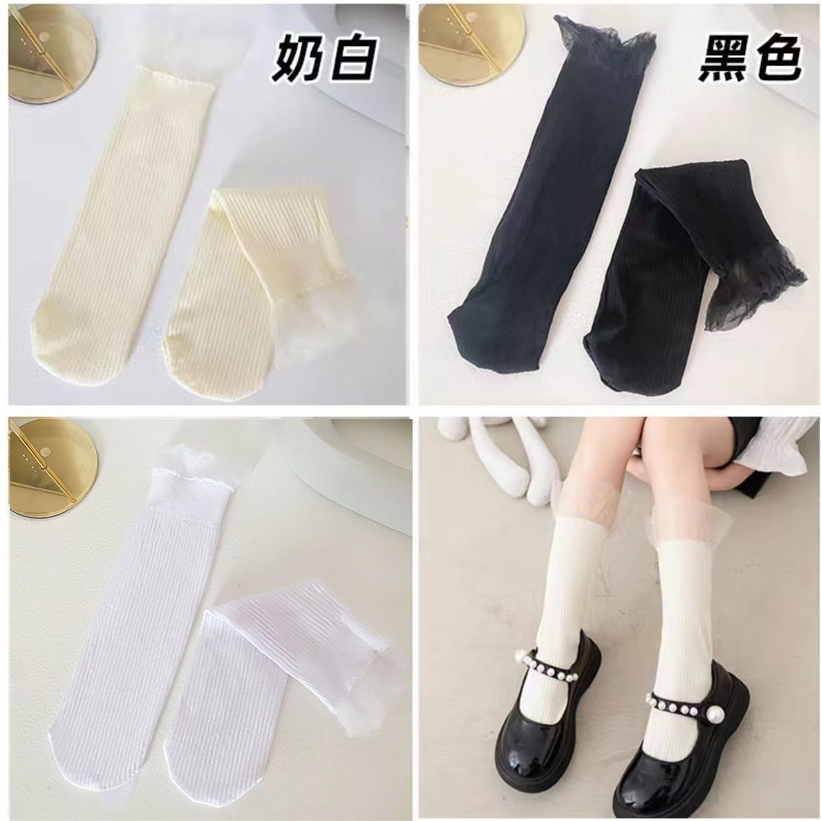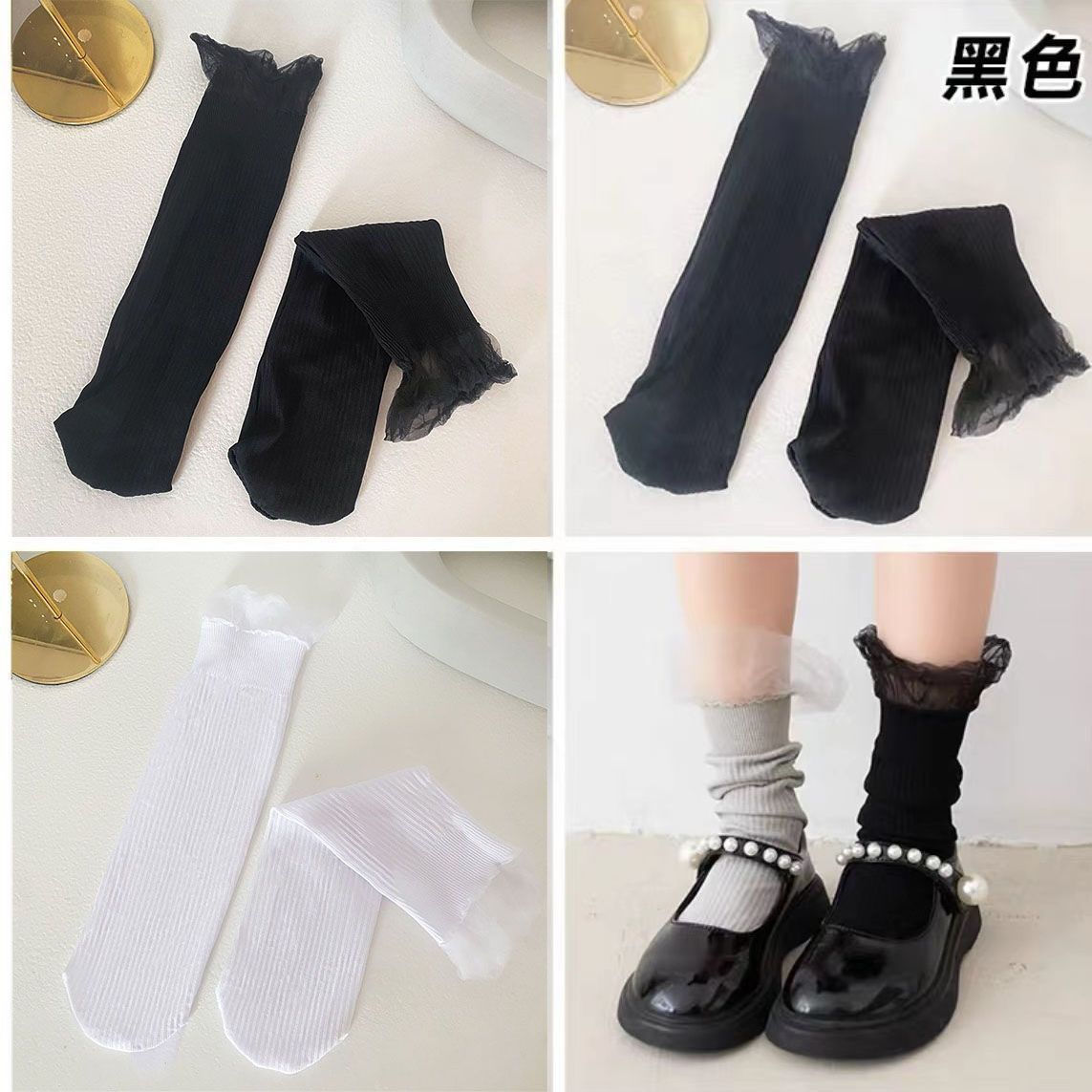 日系可爱蕾丝花边袜子女中筒袜JK学院风长袜洛丽塔泡泡口公主袜