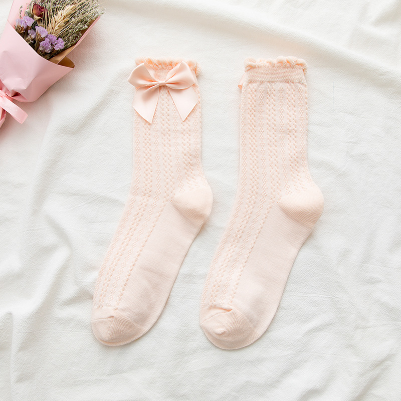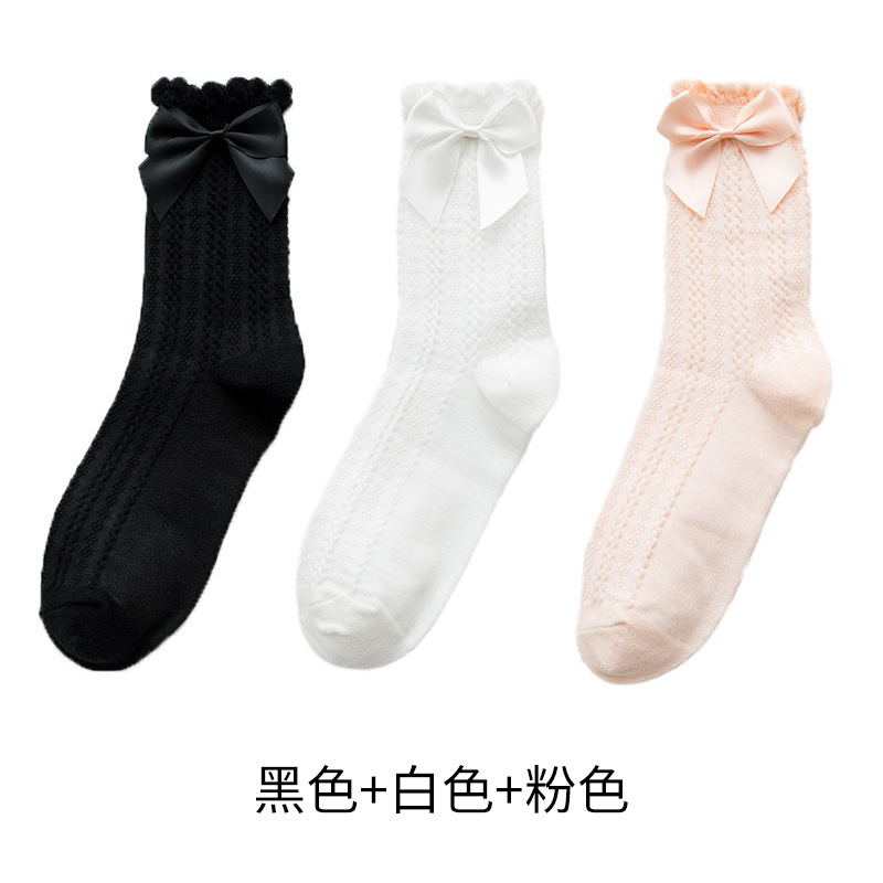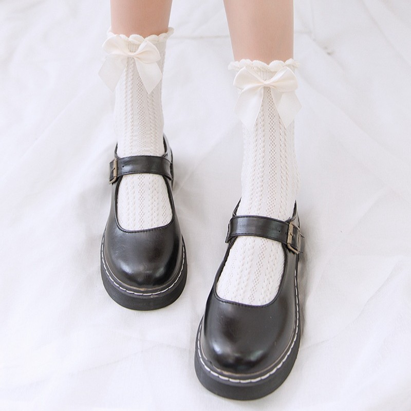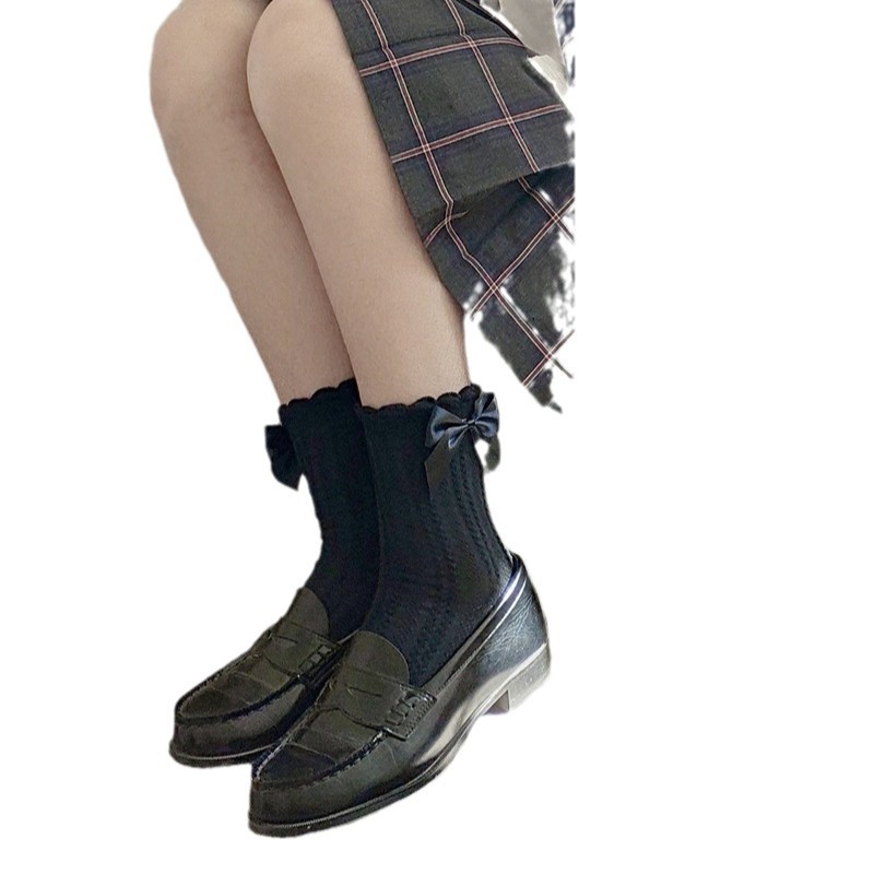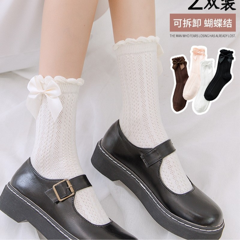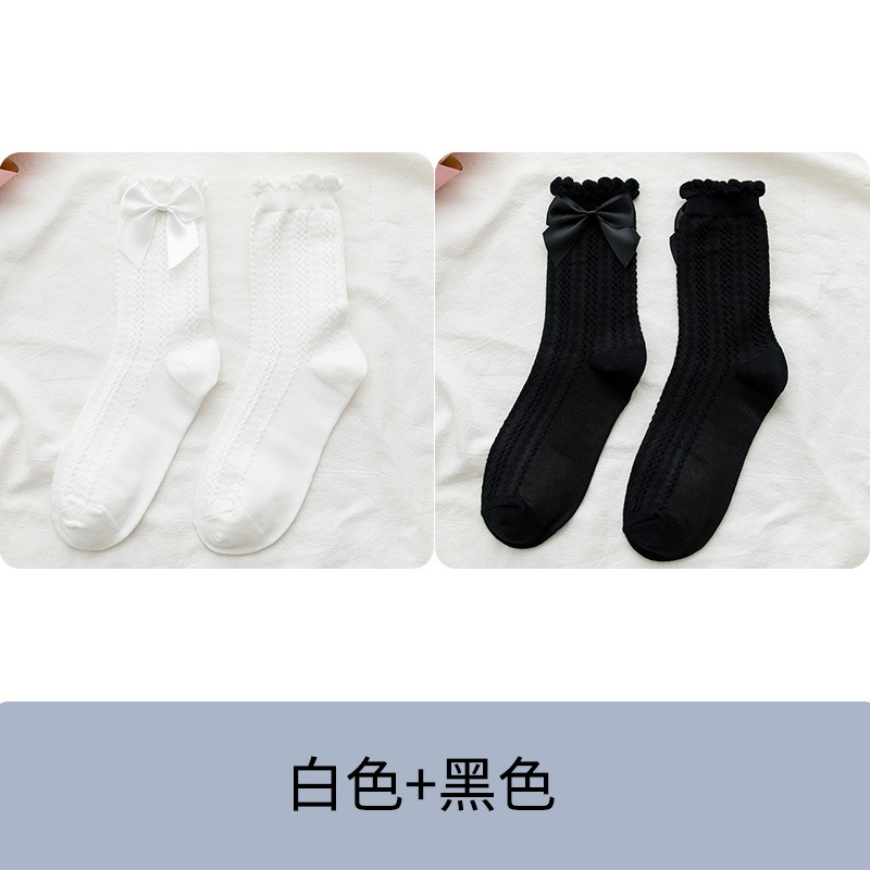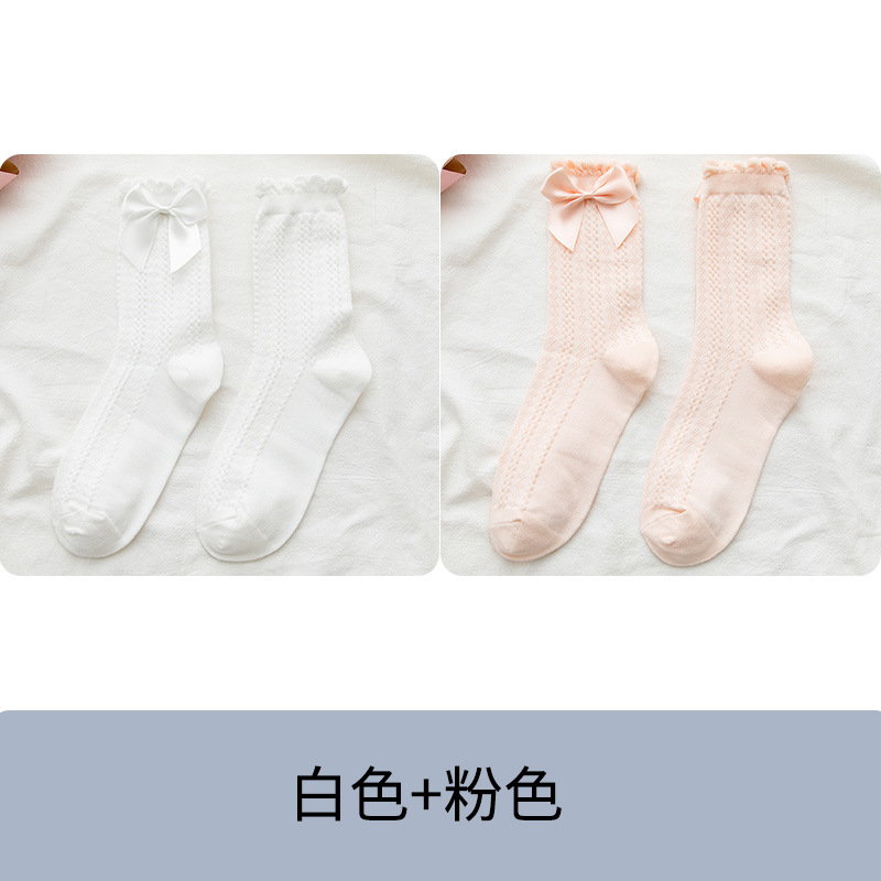 日系jk制服中筒袜lolita燕尾蝴蝶结网眼袜棉洛丽塔袜子女泡泡口袜