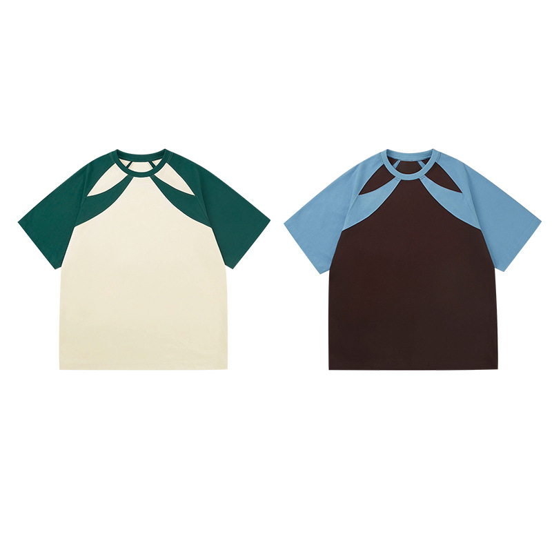 A44#(21支超爽棉220克索罗娜螺纹)纯棉插肩撞色光版短袖T恤跨境