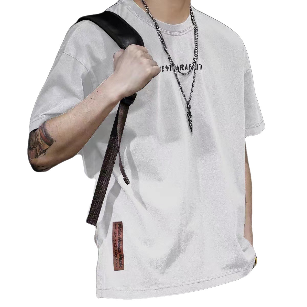 男装春夏季宽松纯棉T恤百搭男士夏天透气圆领短袖简约短袖上衣服T