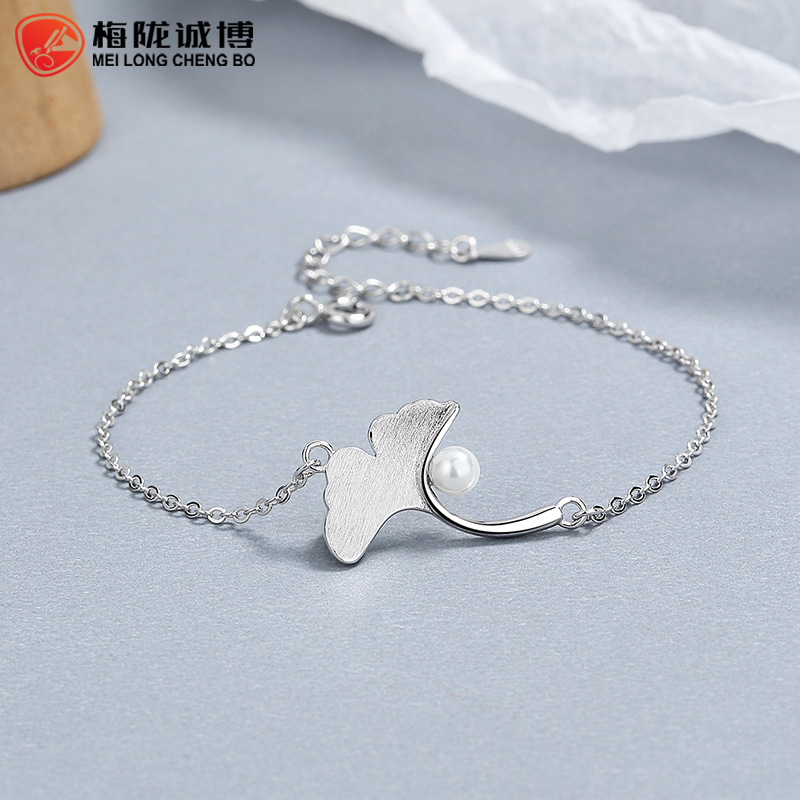 925纯银杏叶珍珠手链女新款甜美清新银杏叶手链简约ins高级感饰品