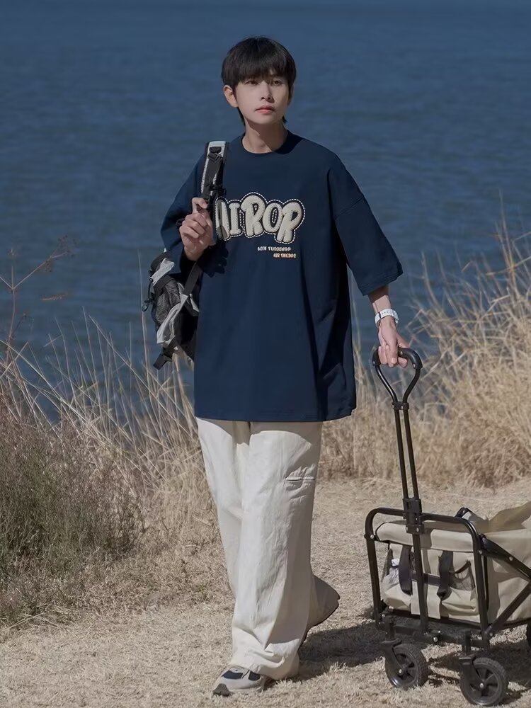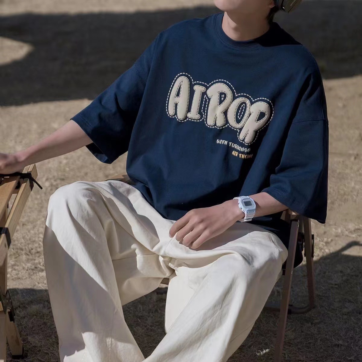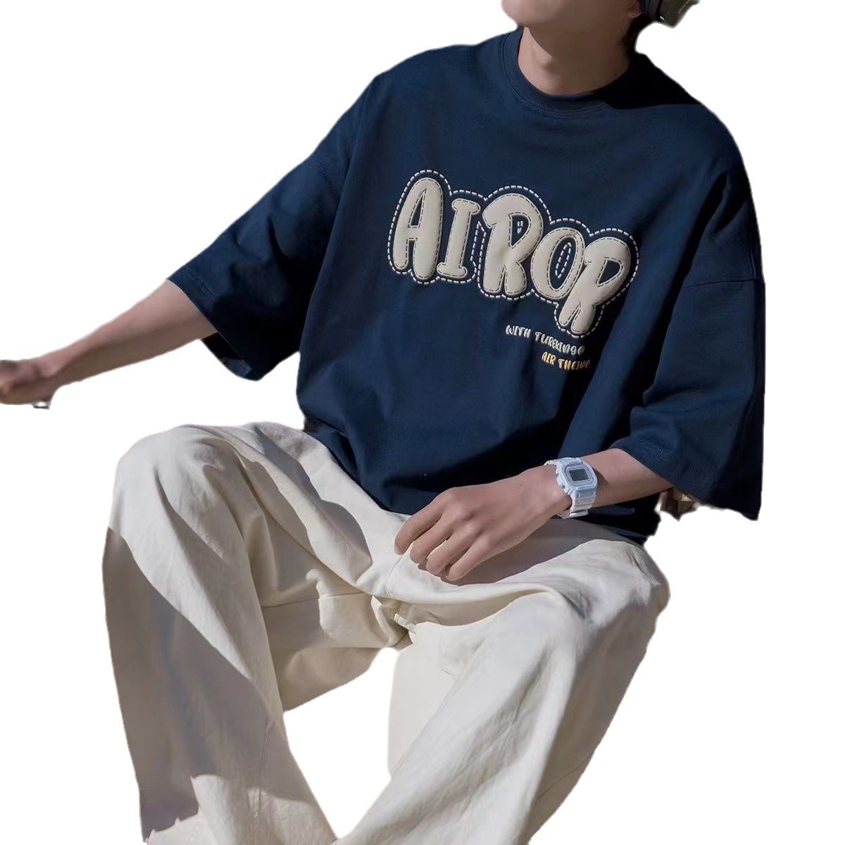 重磅短袖T恤男款潮牌夏季新款棉宽松潮流男生五分袖衣服男款