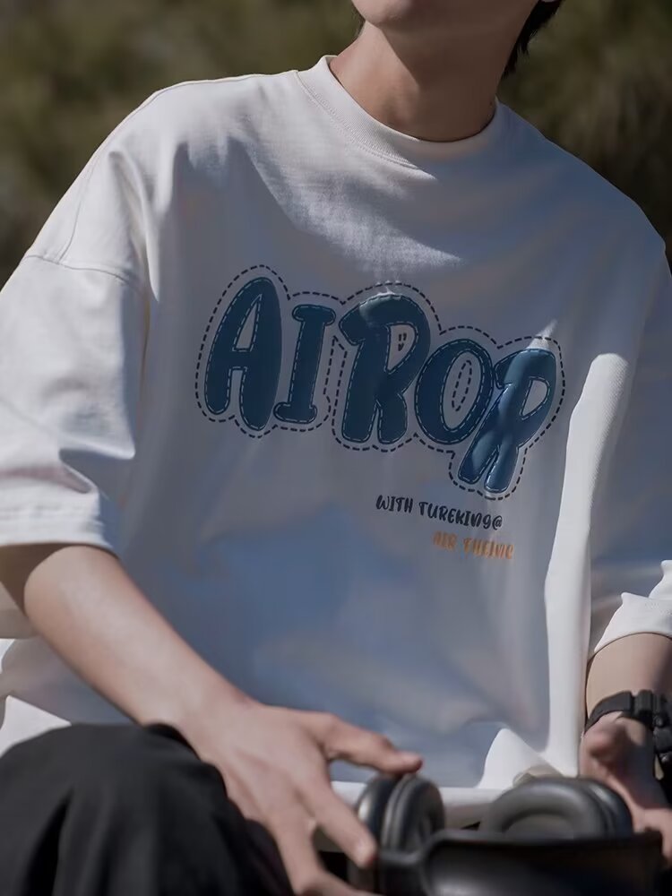 纯棉短袖美式前后印花T恤女夏新款慵懒时尚宽松设计感打底衫