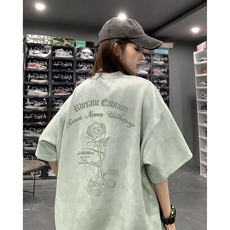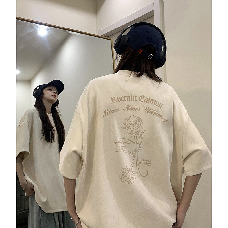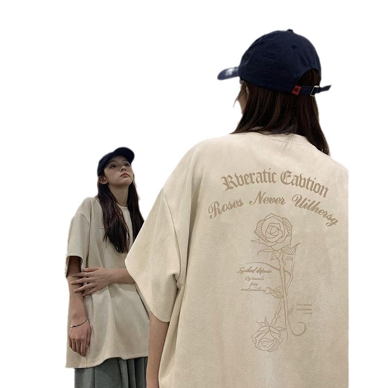 麂皮t恤男短袖夏季新款美式高街潮牌重磅青少年宽松休闲半袖体恤