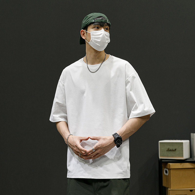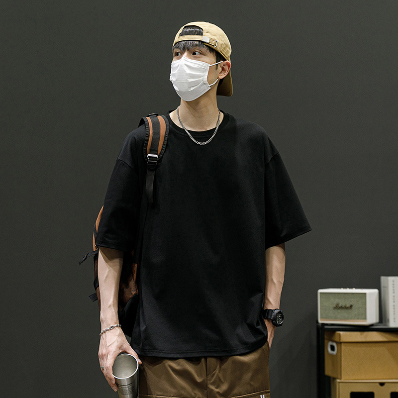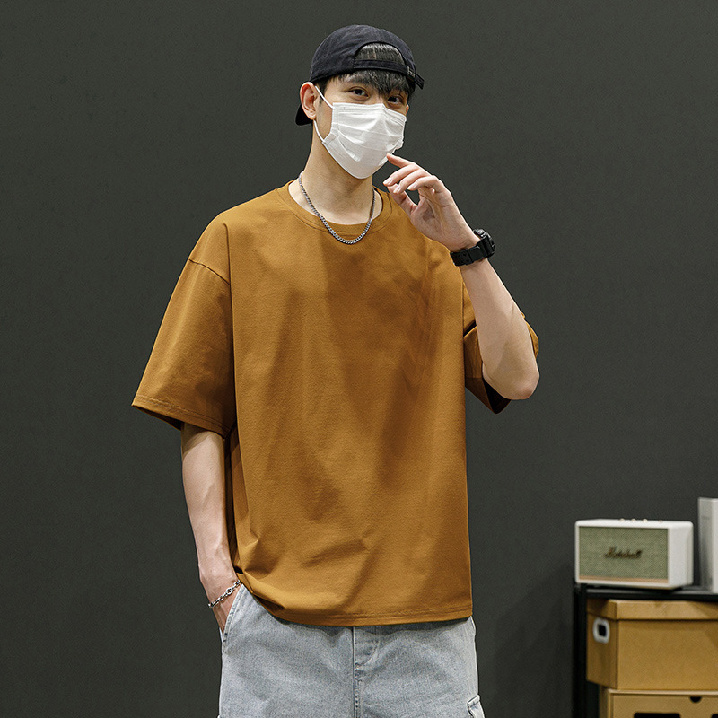 落肩短袖男定制冰爽t恤男夏季圆领t恤夏季宽松运动体恤半袖男