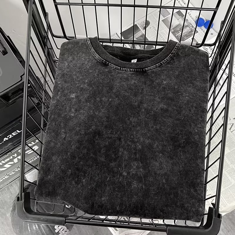 水洗做旧重磅纯棉短袖T恤男宽松港风ins五分袖夏季潮半袖体恤潮牌