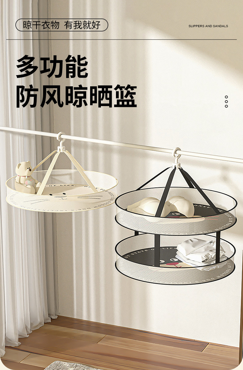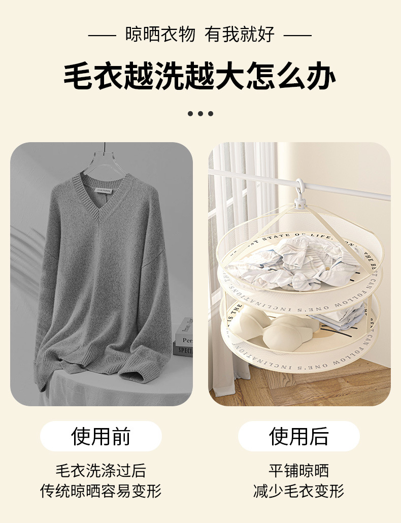 晒衣篮双层可折叠晾晒篮家用晒袜子神器平铺晾内衣晾晒网兜