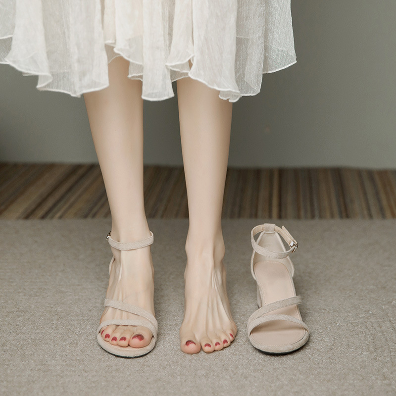 方头粗跟凉鞋女夏一字带时装新款中跟百搭时尚好穿高跟鞋