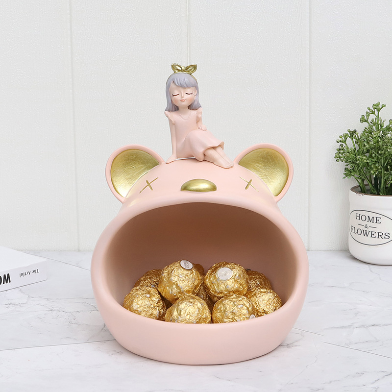 欧式卡通入户玄关钥匙杂物收纳摆件创意家居桌面置物盒树脂工艺品