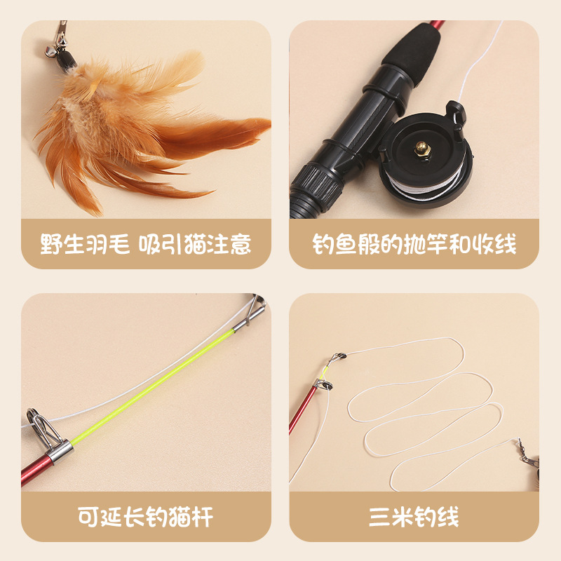 羽毛替换逗猫棒宠物玩具钓轮轮猫咪互动训练伸缩杆钓竿