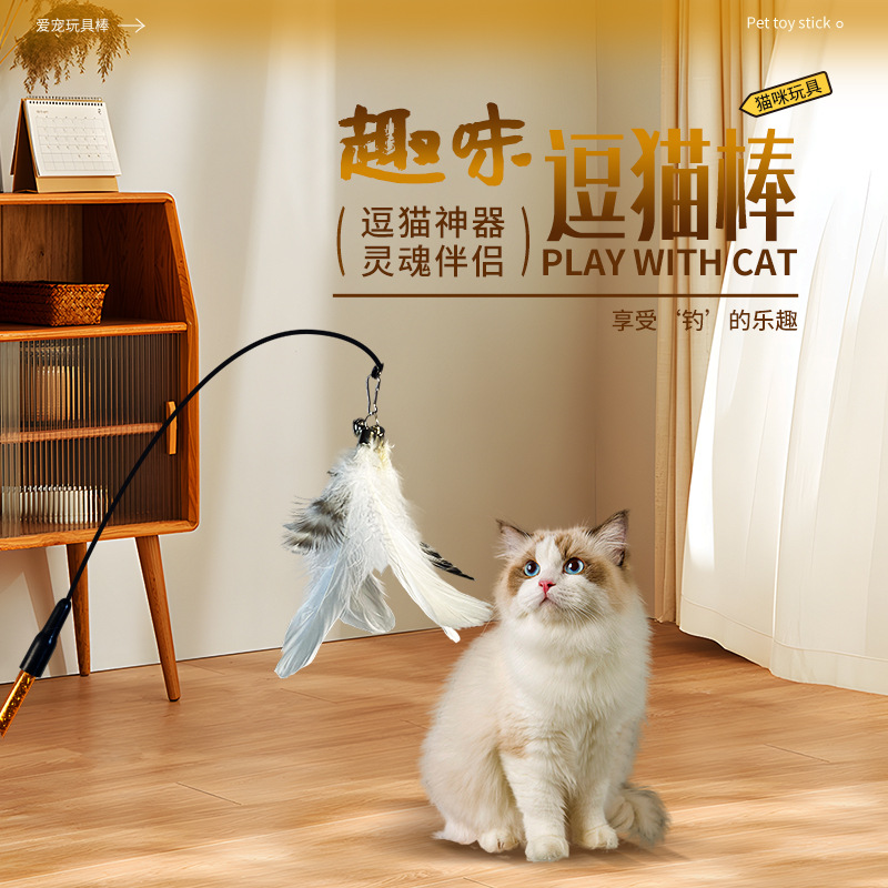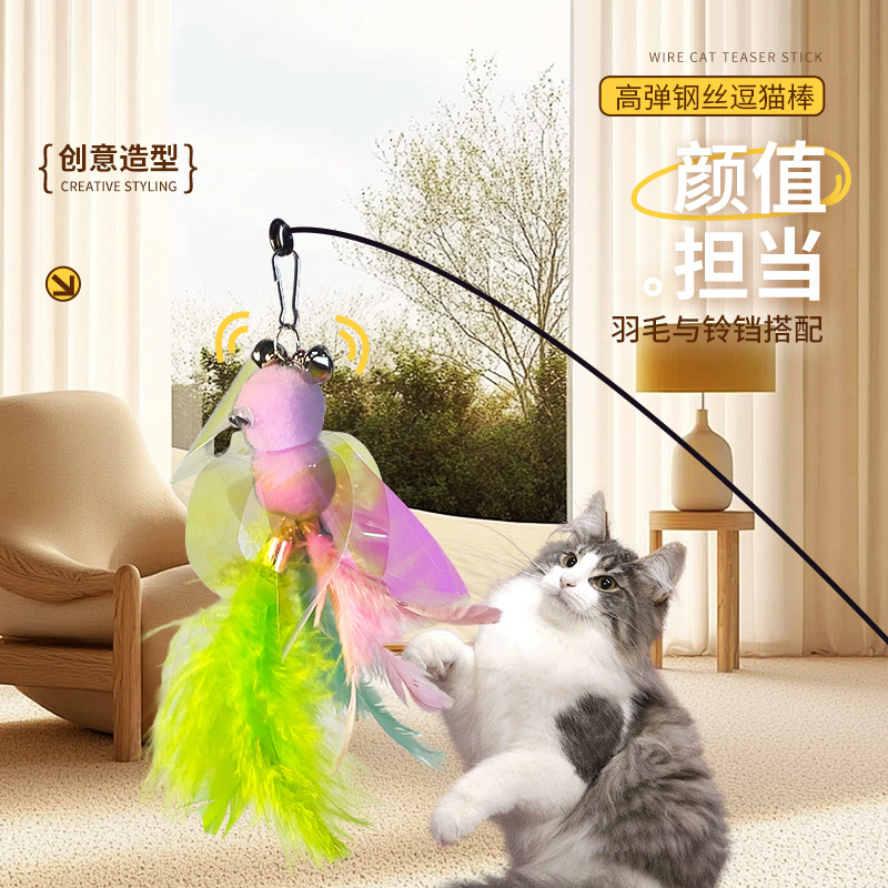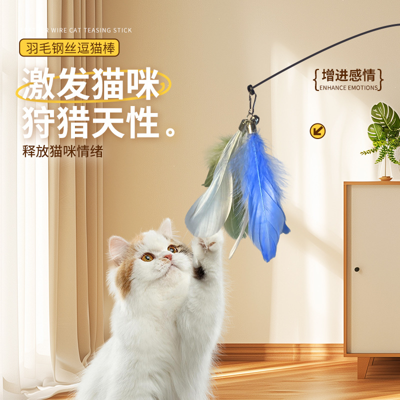长杆逗猫棒羽毛钢丝铃铛逗猫玩具替换头咬不烂宠物用品猫玩具
