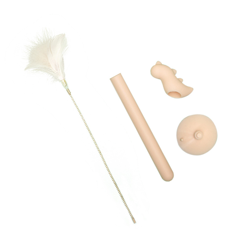 粉色小恐龙逗猫棒(4个配件)-硅胶头