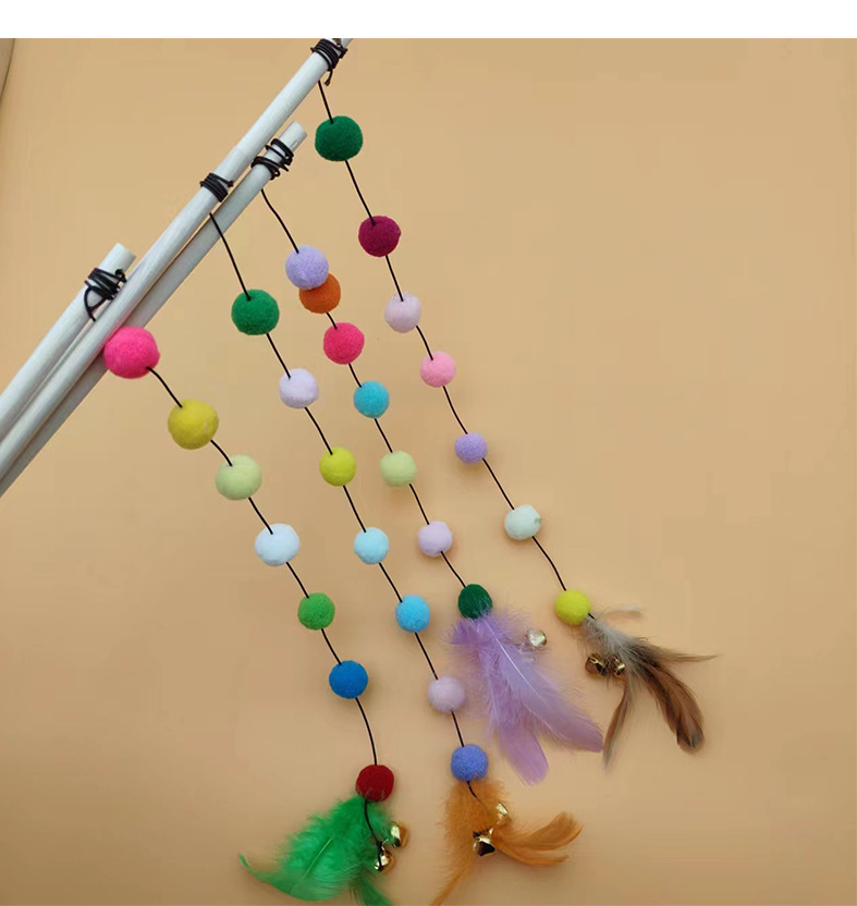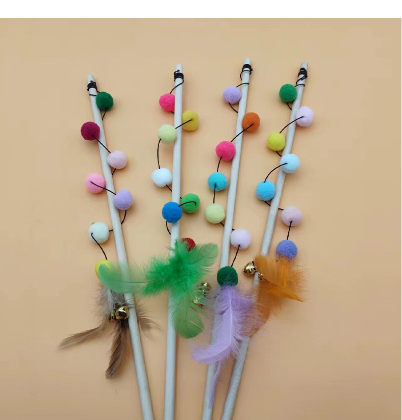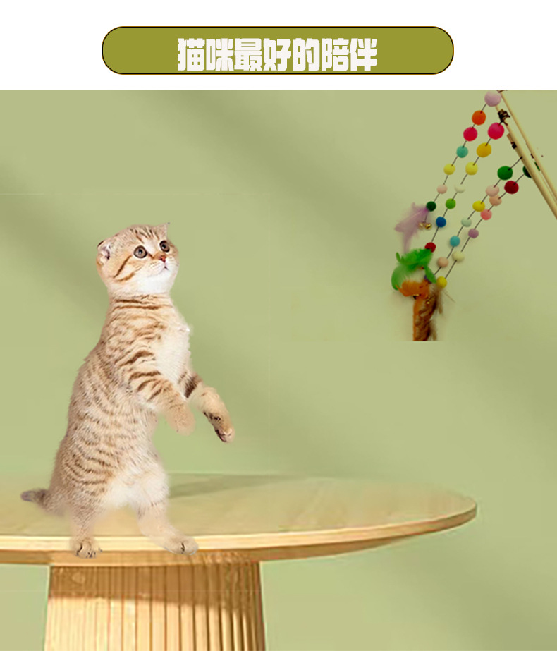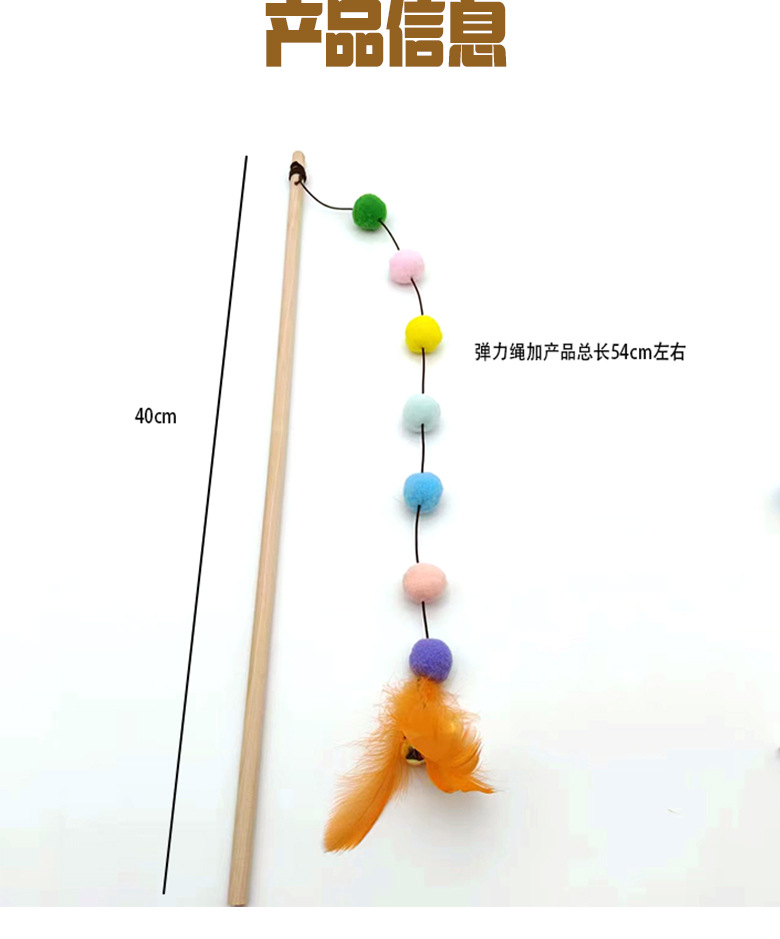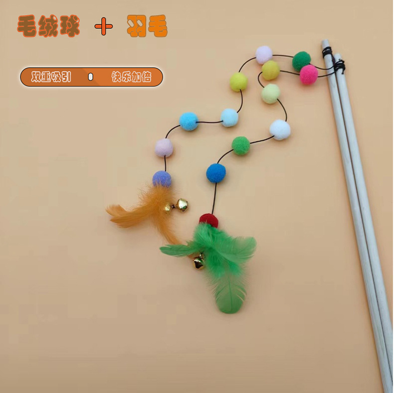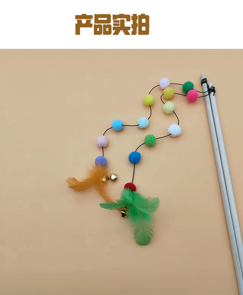 猫玩具七彩龙珠长杆逗猫棒自嗨解闷原木耐咬铃铛羽毛互动猫咪神器