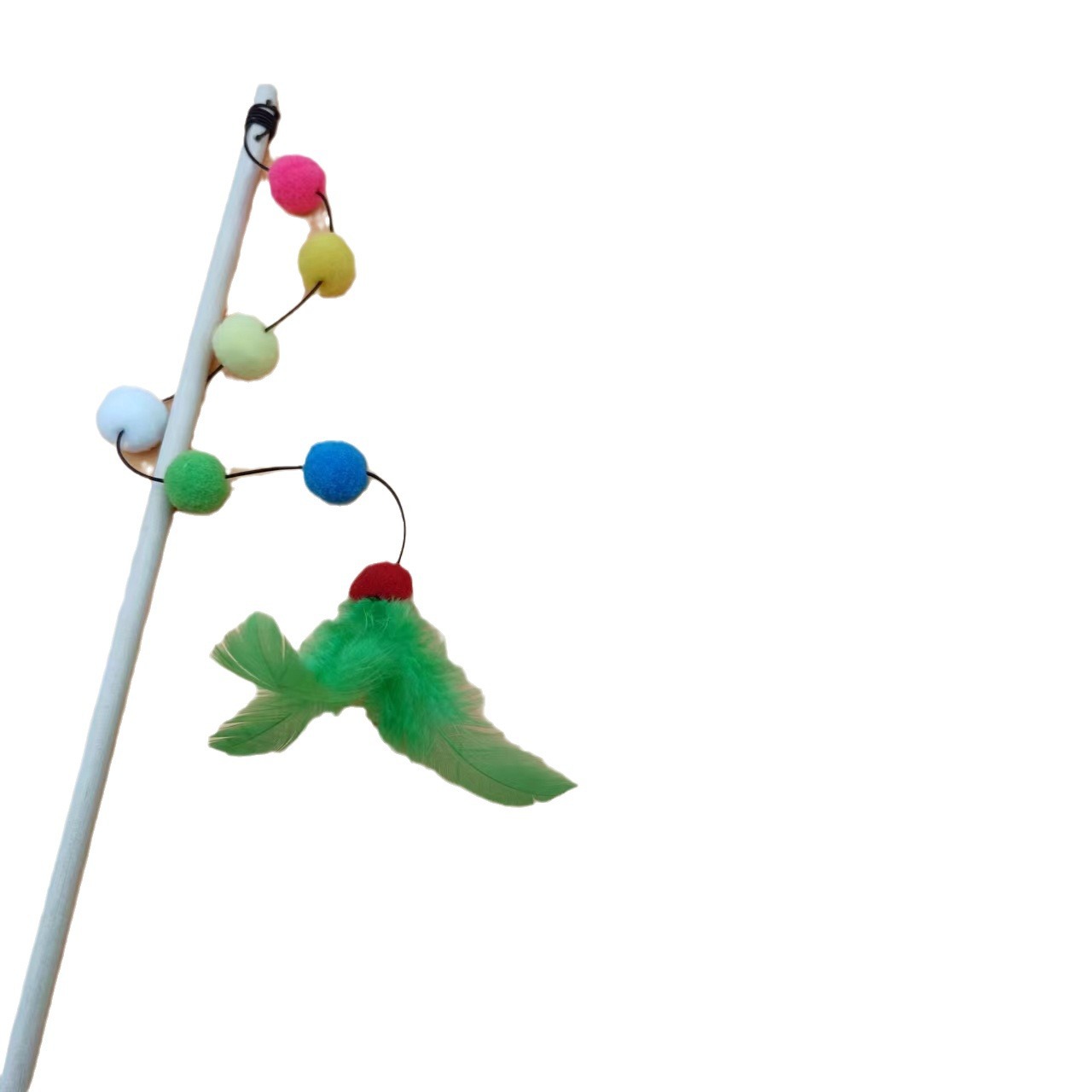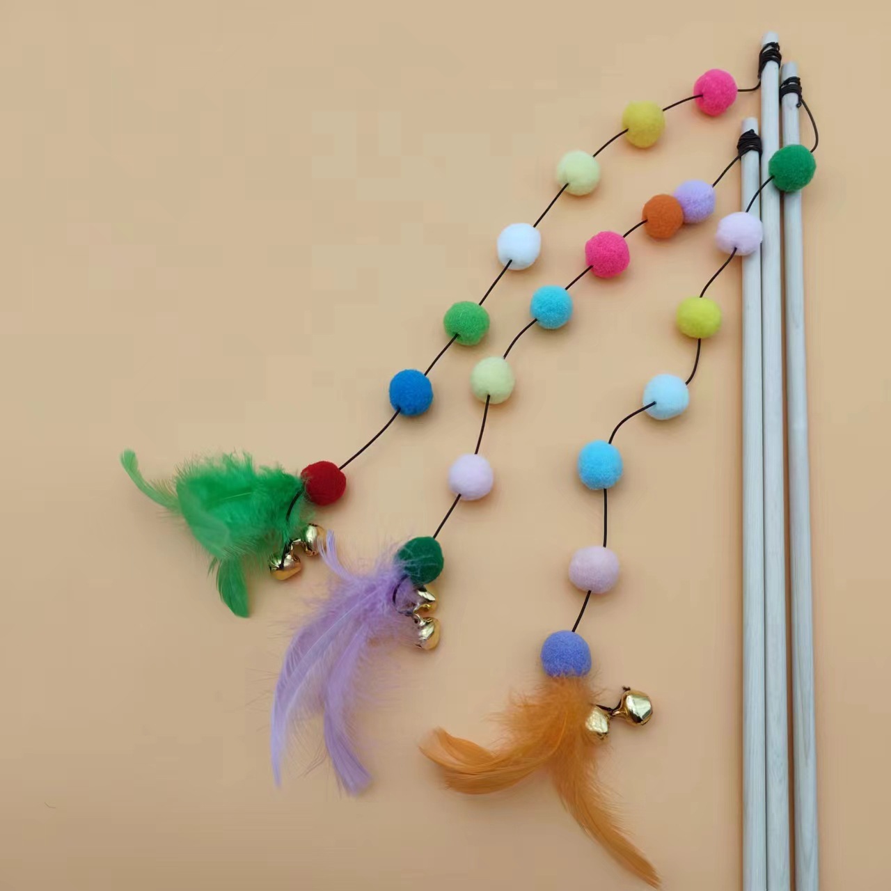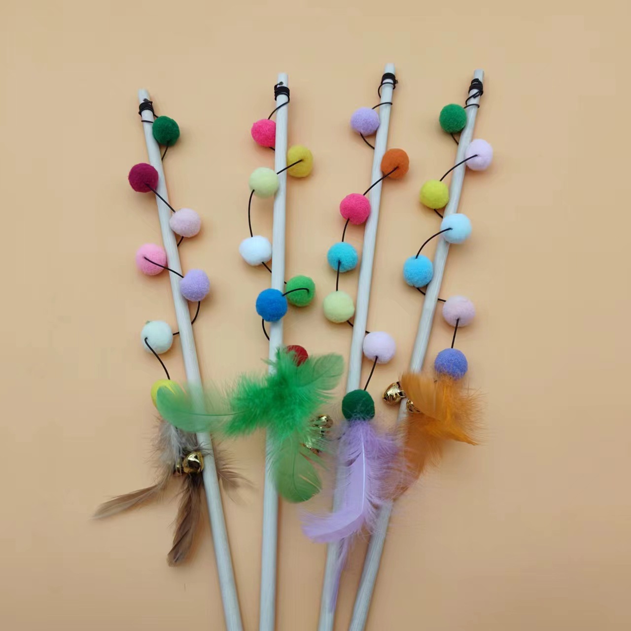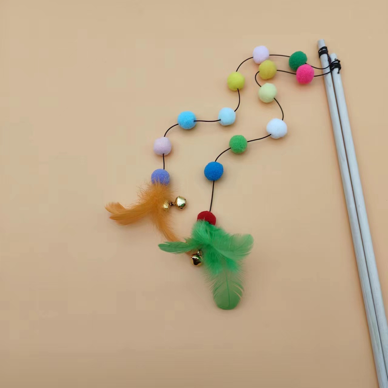 猫玩具七彩龙珠长杆逗猫棒自嗨解闷原木耐咬铃铛羽毛互动猫咪神器